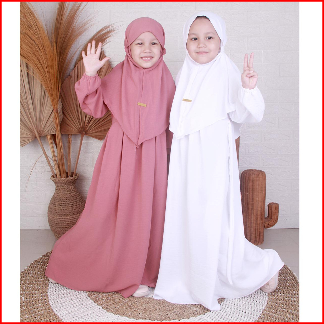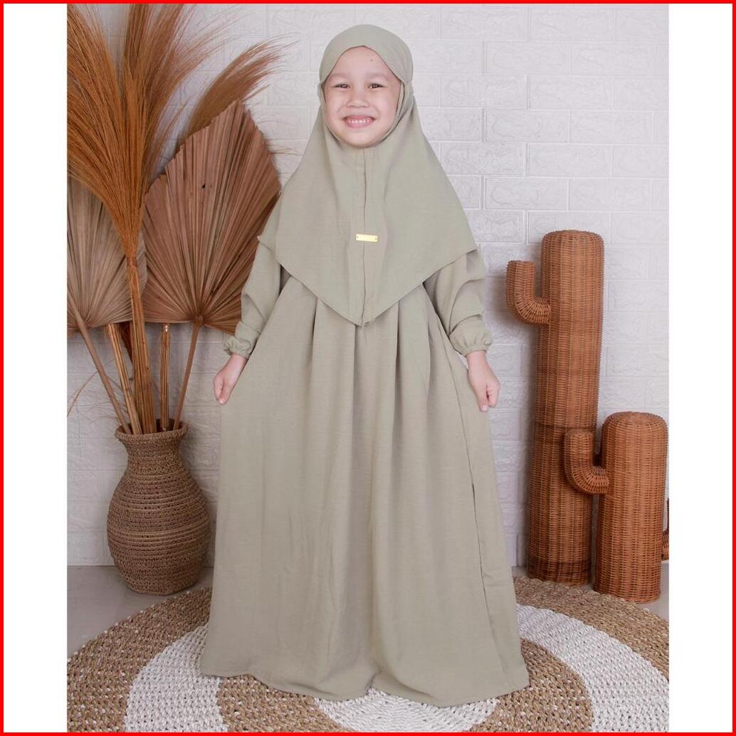 Gamis Anak Perempuan Syari Crincle Airflow Qanita Free Khimar 5 - 13 Tahun