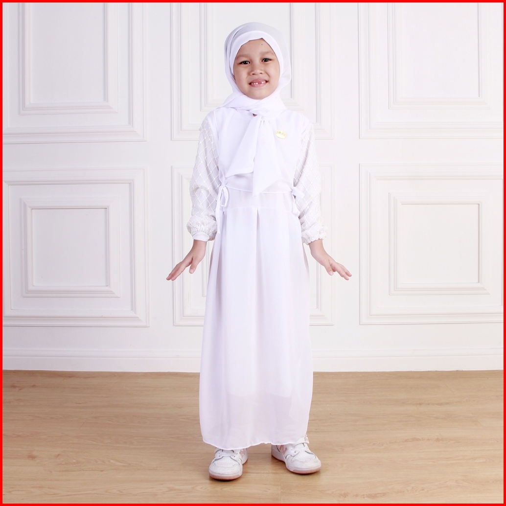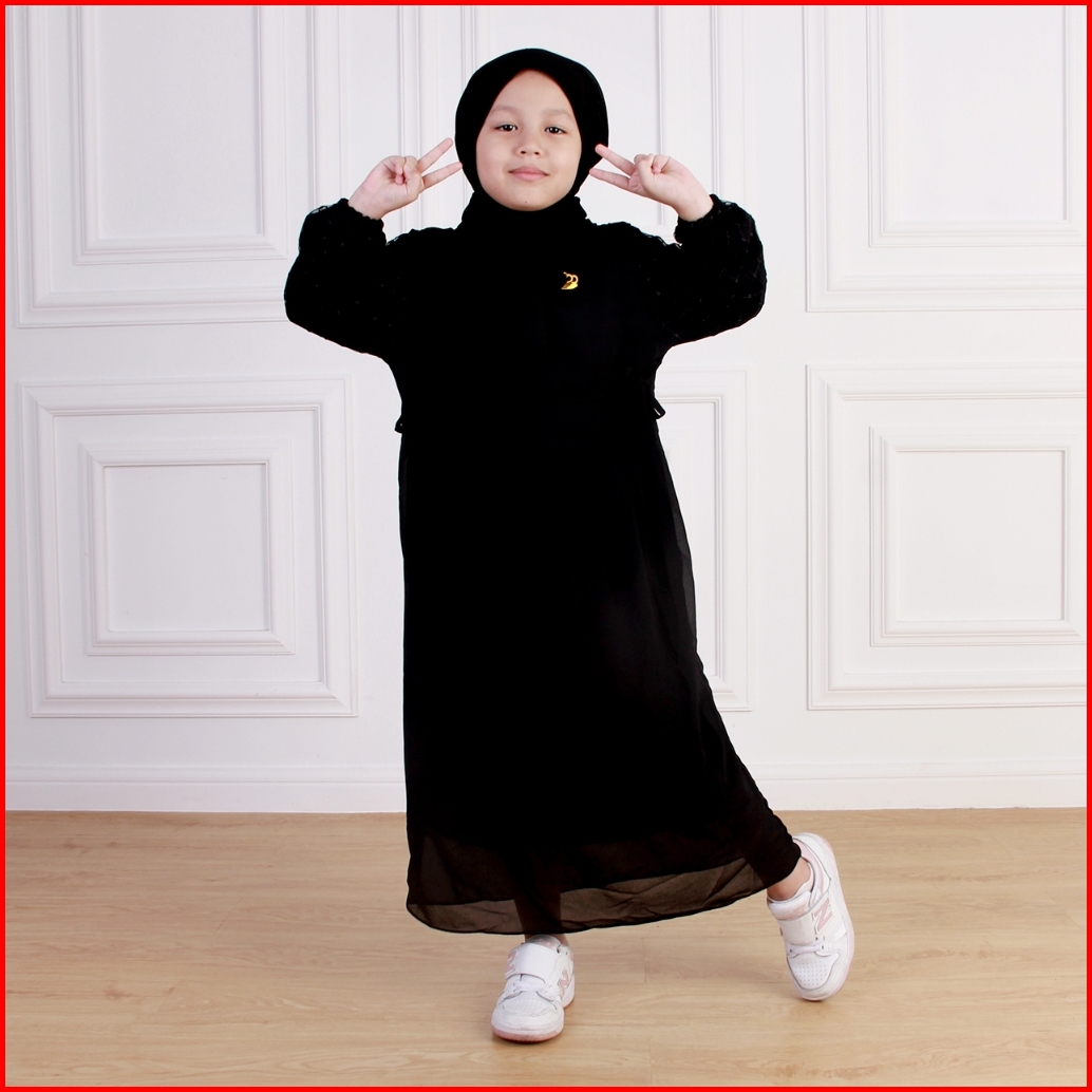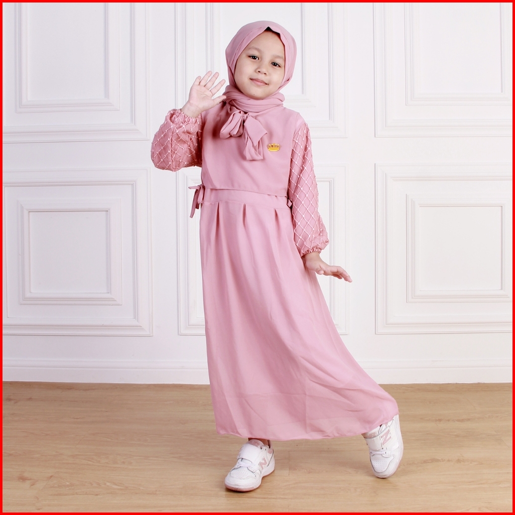 Dungdungkids Gamis Anak Melisa Ceruty Polos Brukat Free Pashmina Tali 3 - 12 Tahun