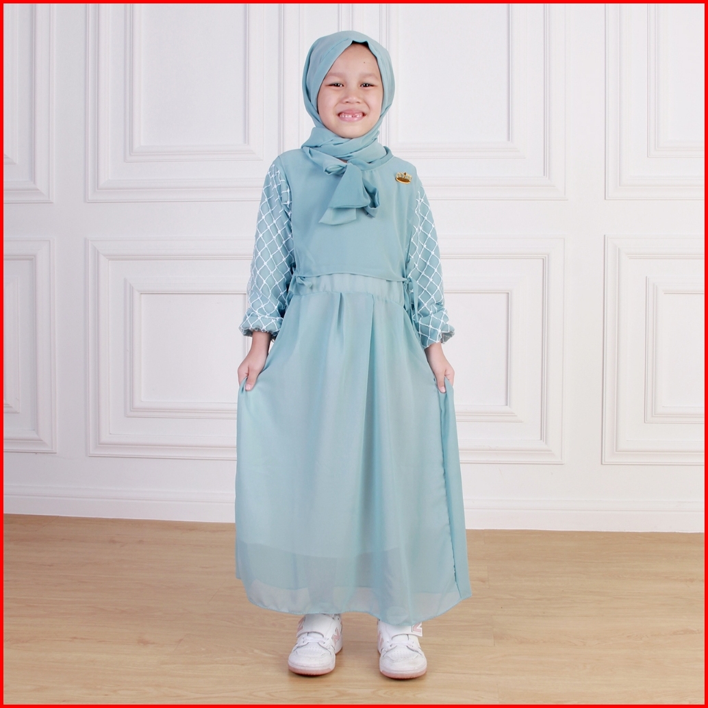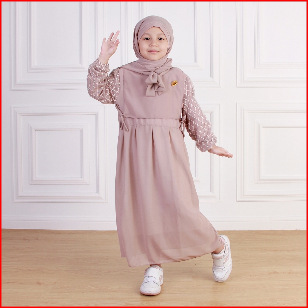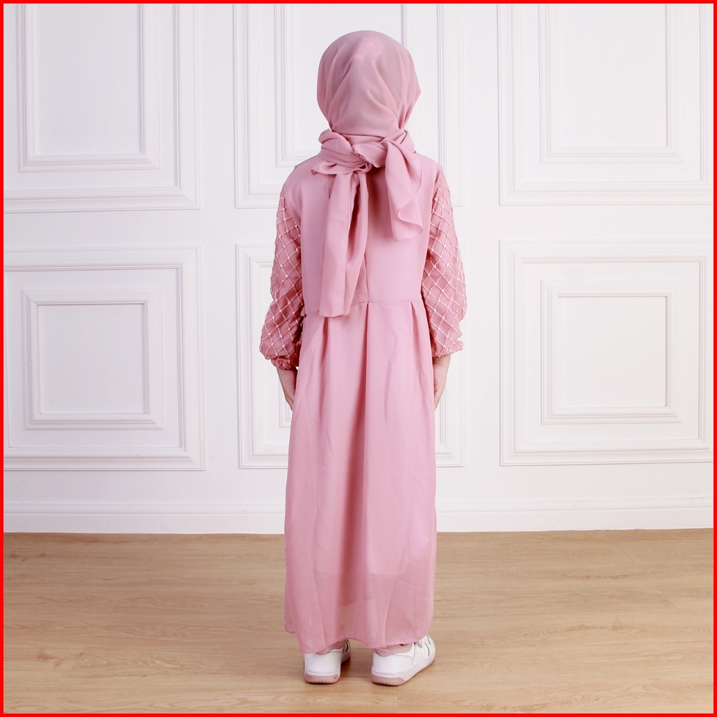 Dungdungkids Gamis Anak Melisa Ceruty Polos Brukat Free Pashmina Tali 3 - 12 Tahun