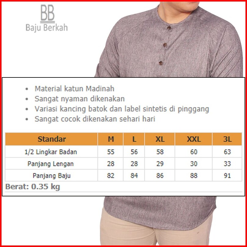 Baju Koko Kurta Dewasa Lengan Pendek Material Catton Madina Hasan