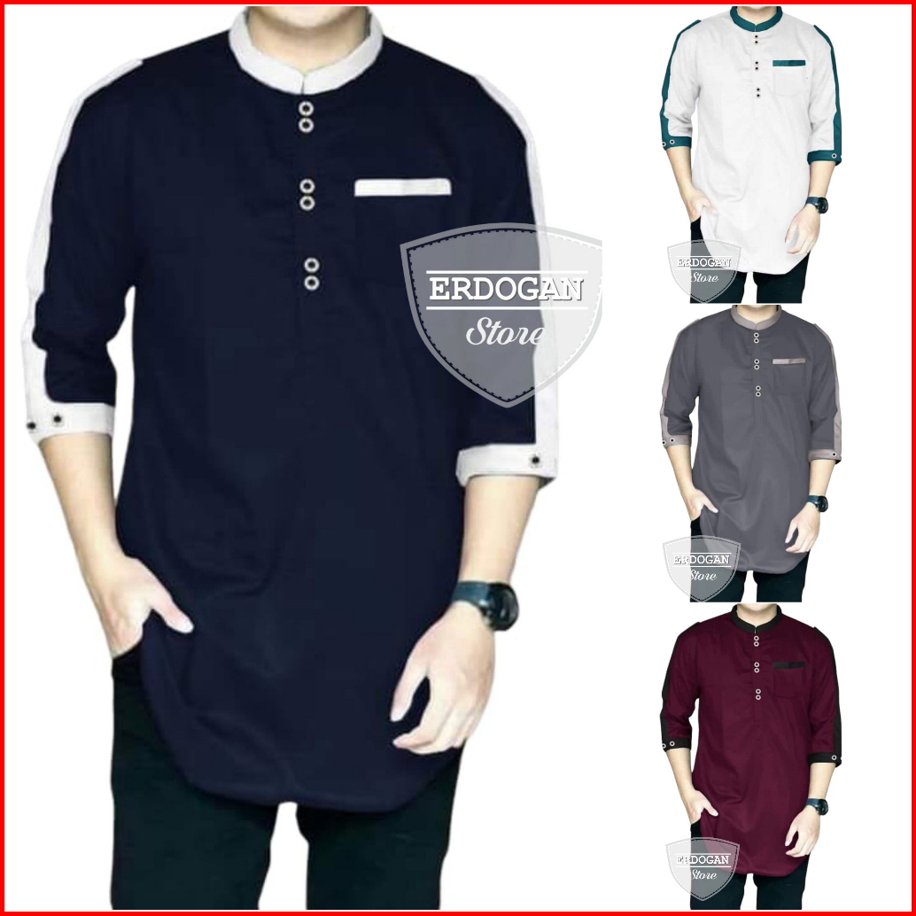 Top Produk Koko Zaka Lengan 3 4 Mewah - Er Dogan Store - Ukuran S-3xl - Matt Katun Adem Premium - Baju Koko Qurta Pria -