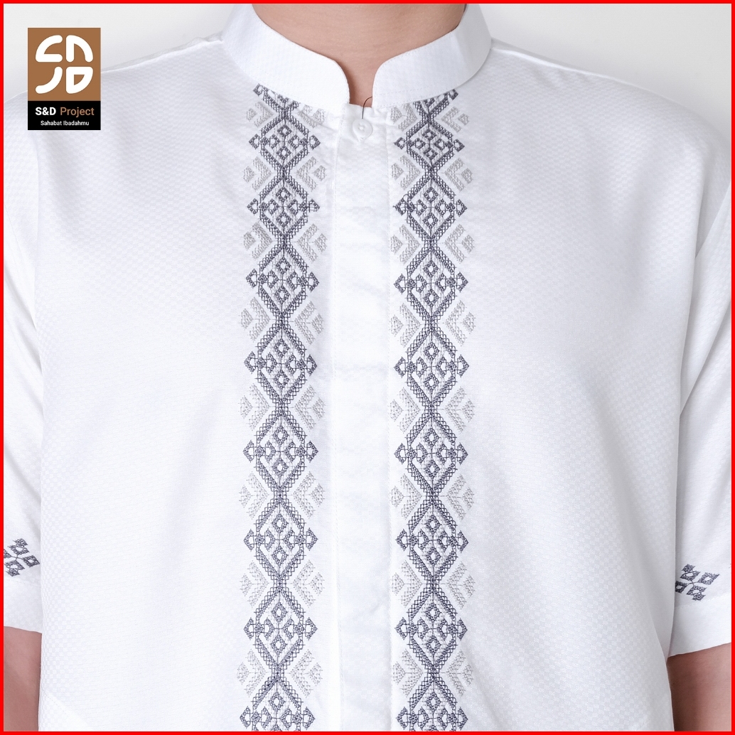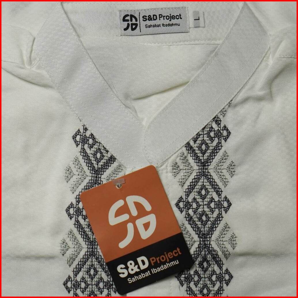 S D Project Baju Kemeja Koko Bahan Polikatun Bordir Jumbo Lengan Pendek Ukuran S M L Xl Xxl 3xl 4xl - Putih Tulang