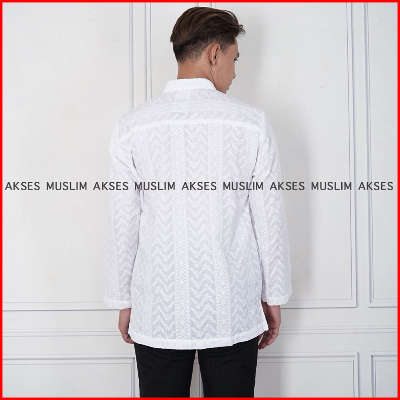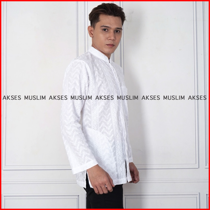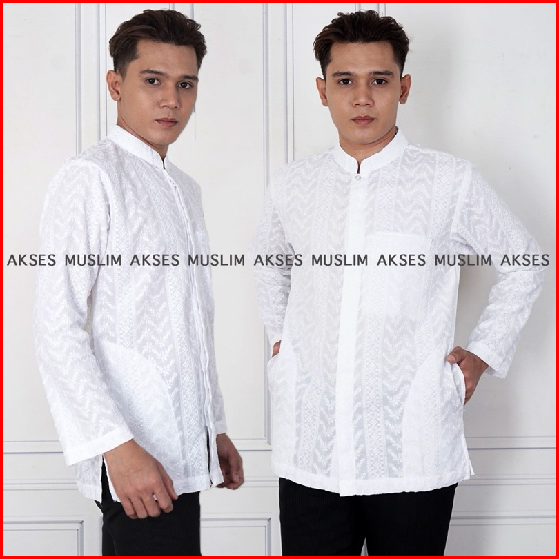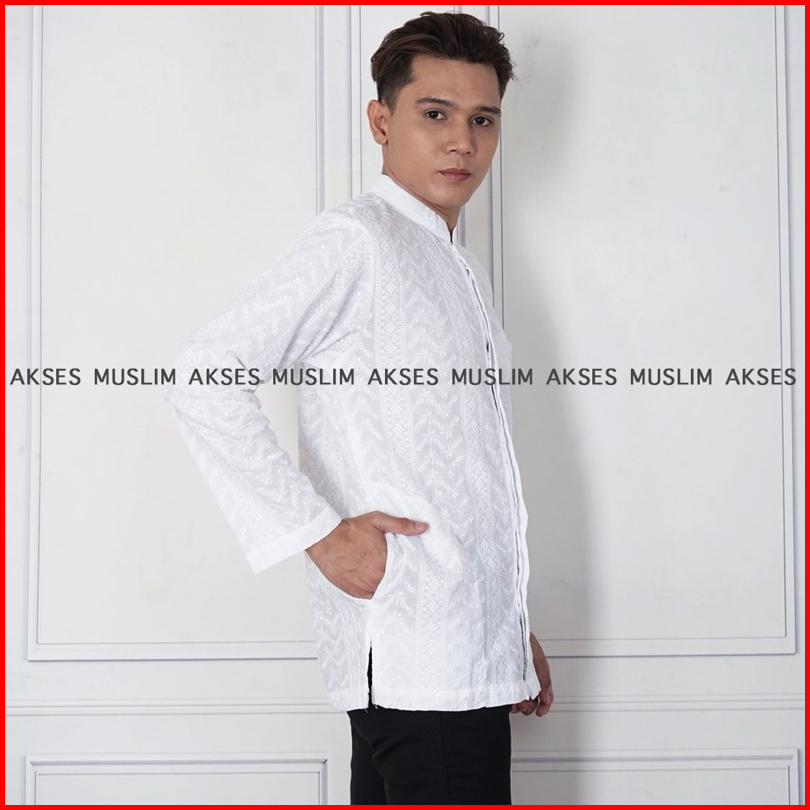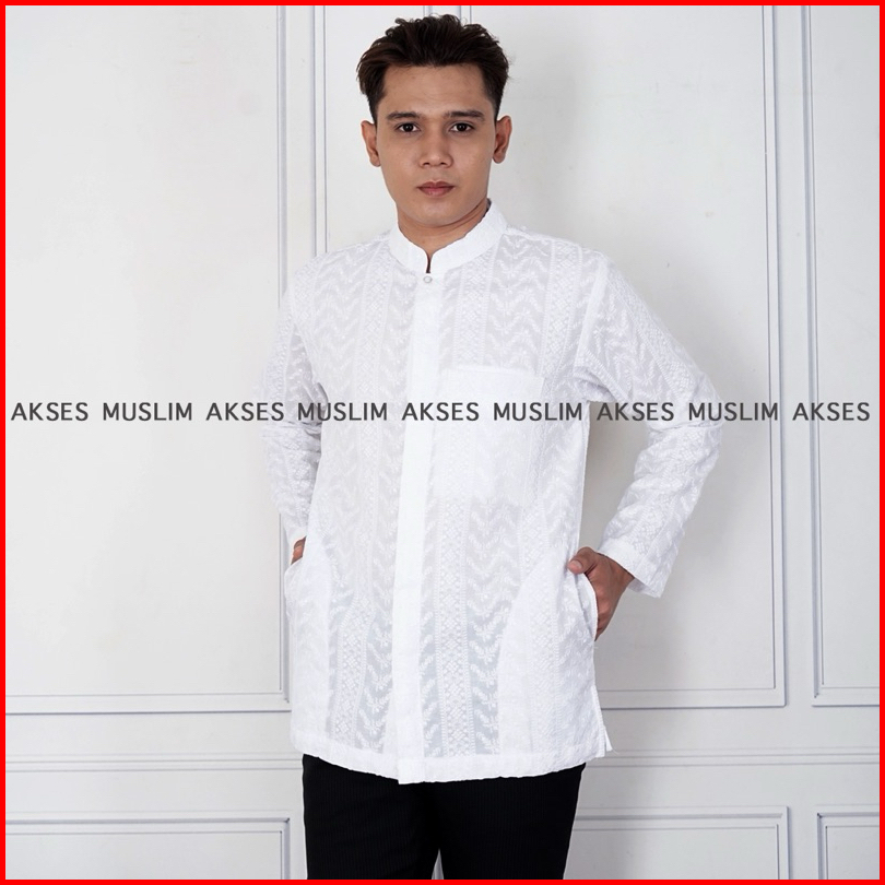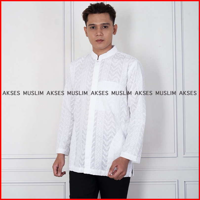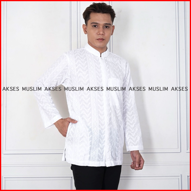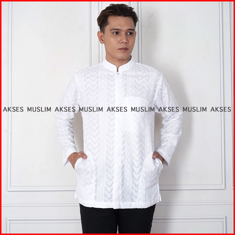 Baju Koko Putih Kemko Lengan Panjang Katun Paris Full Bordir Kualitas Premium Original Elegant
