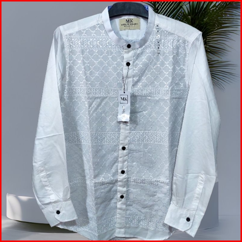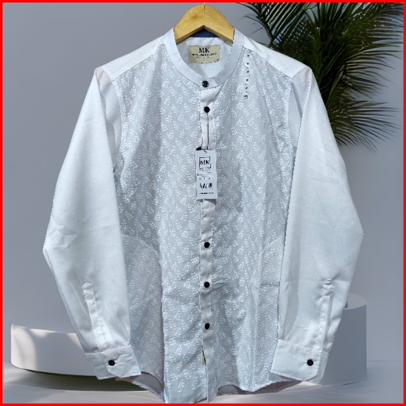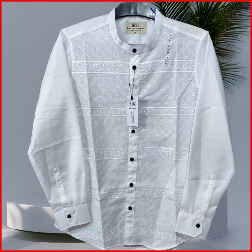 Baju Kemko Kemeja Koko Putih Mk Pria Dewasa Lengan Panjang Muslim Kinaro Brukat Bordil Putih Bersih