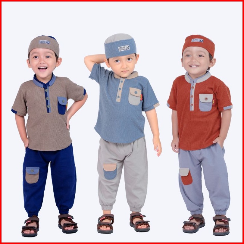 Hoofla Kids - Baju Setelan Koko Anak Bayi Laki Laki Terbaru Free Peci Set Shaka Baby Series Usia 6 Bulan Sampai 5 Tahun