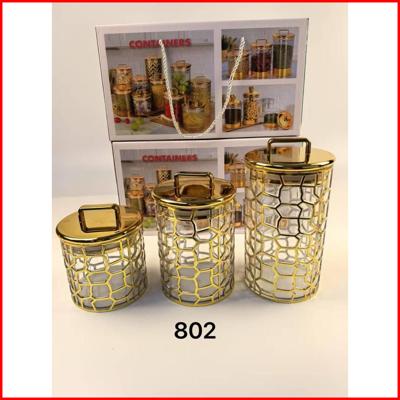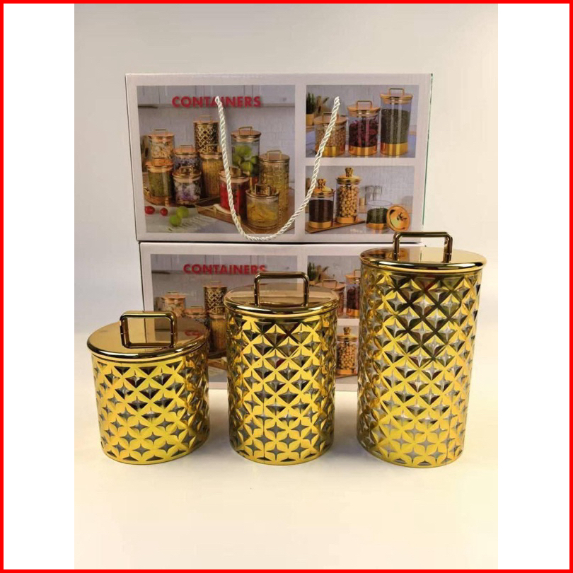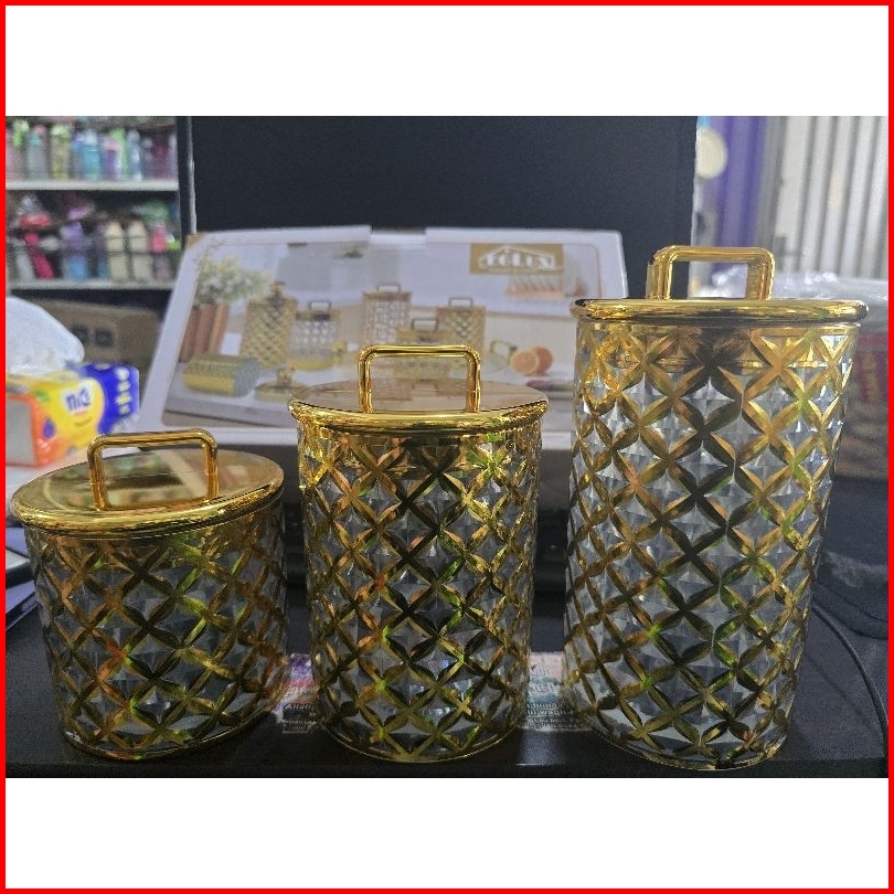 Toples Mewah Akrilik 3pcs Set Toples Kue Mewah Toples Makanan Estetik Toples Kedap Udara Toples Set