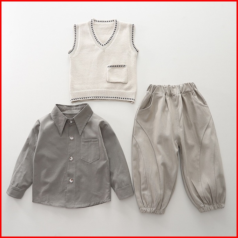 Setelan Anak Kemeja Vest Dan Celana Panjang Baju Anak Set 3in1 Tobias