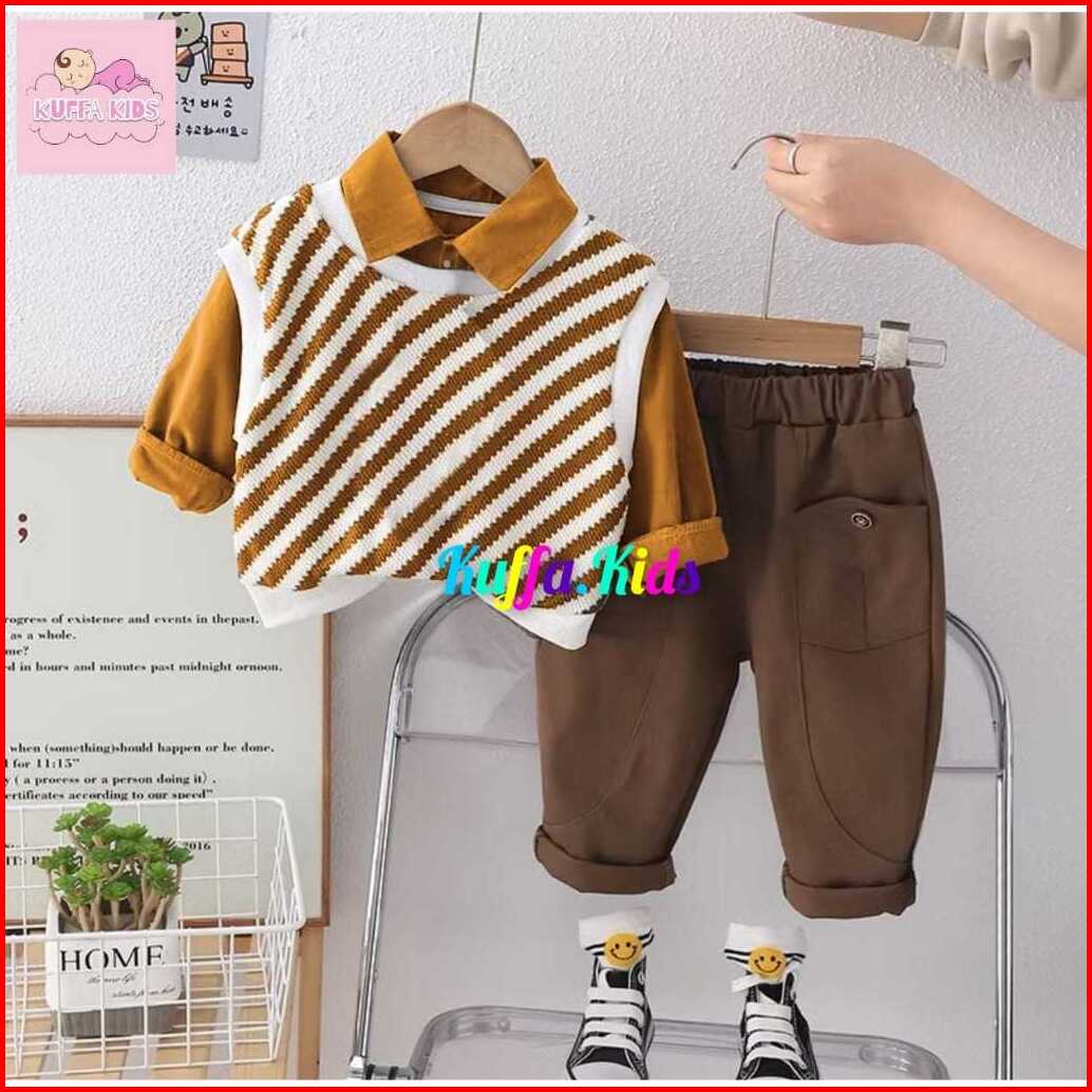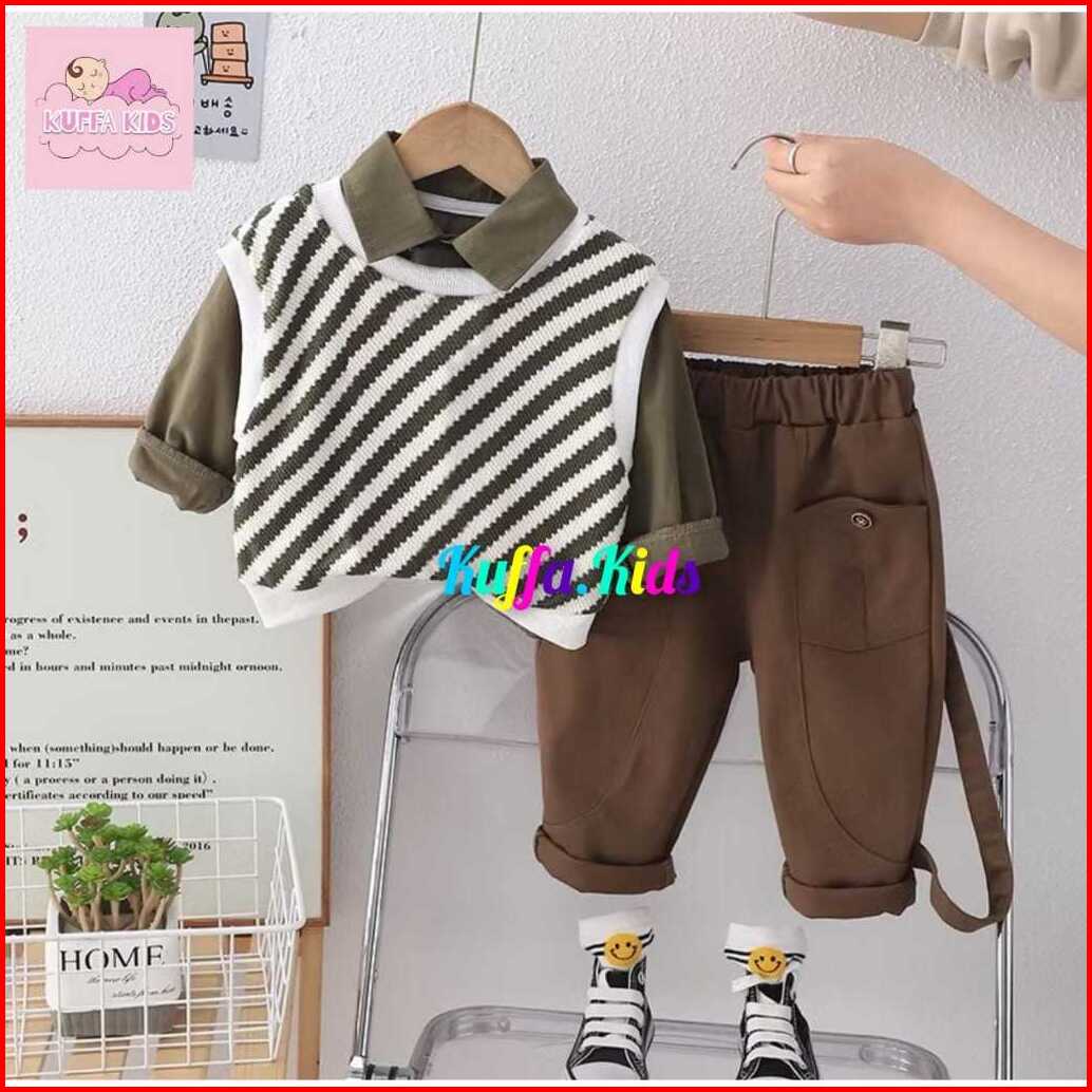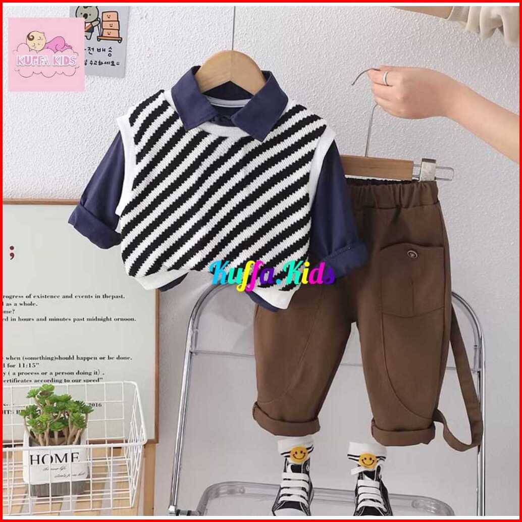 Setelan 3in1 Rompi Salur Rajut Usia 1-5 Tahun Baju Anak Laki Laki Impor Pakaian Baju Premium Anak Cowok