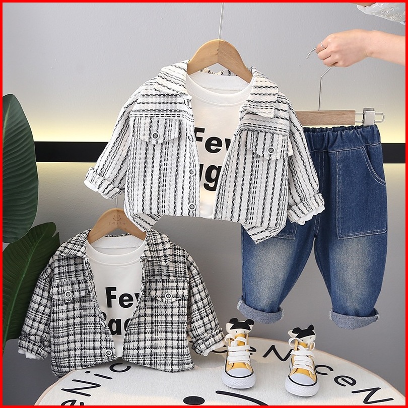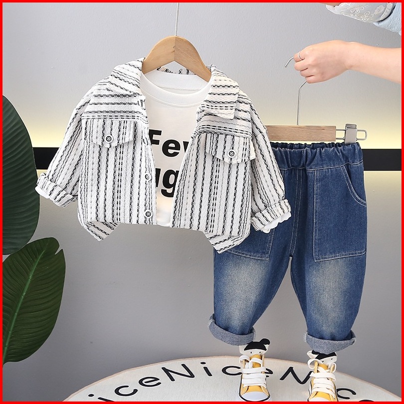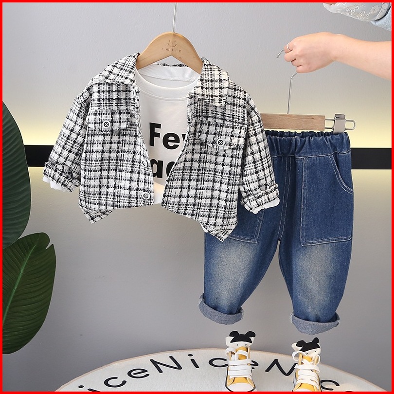 Crisbelleshop Cr231253 Setelan Anak Laki Laki - Setelan Kemeja 3 Pcs Anak Cowok - Baju Anak Laki Laki Fashion