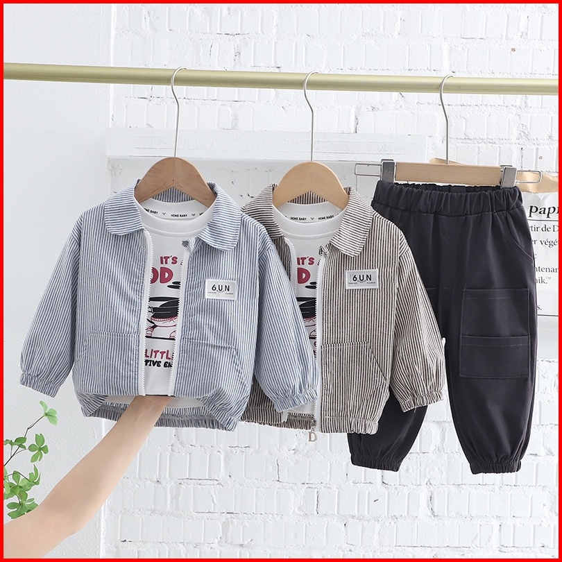 Setelan Baju Anak Laki Laki Import Jaket Anak Cowok Impor Setelan 3pcs Jaket Kaos Celana Fashion Anak Cowok Korea