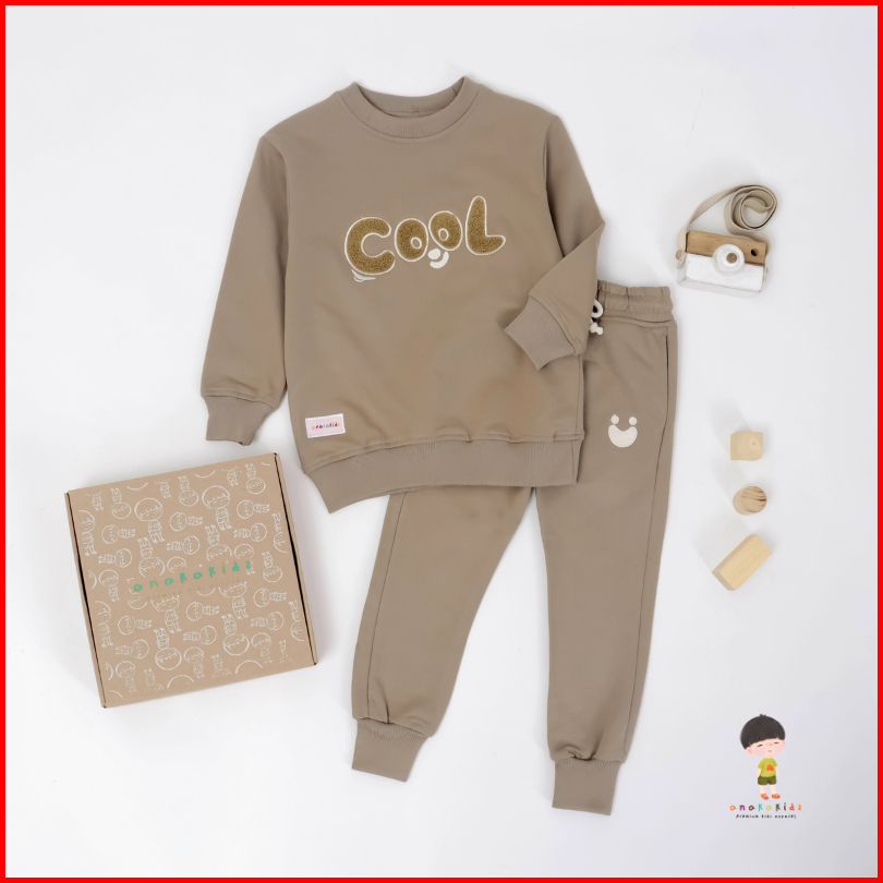 Anakakidz Sweater Crewneck Jogger Anak Set Dark Brown Setelan Anak Unisex 1 - 10 Tahun