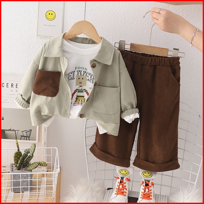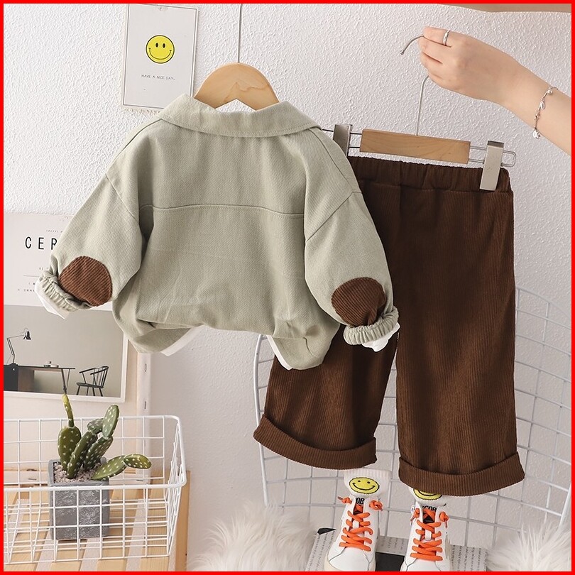 Setelan Jaket Kemeja Anak Laki Laki Import Setelan Kemeja Jaket Model Kantong Cokelat Anak Impor Setelan 3pcs Kemeja Sik