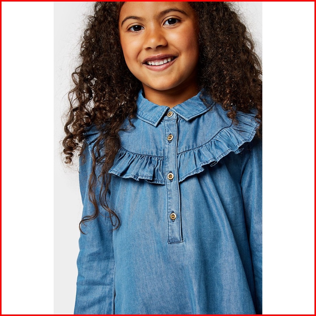 Mothercare Denim Dress With Frill - Dress Anak Perempuan Biru