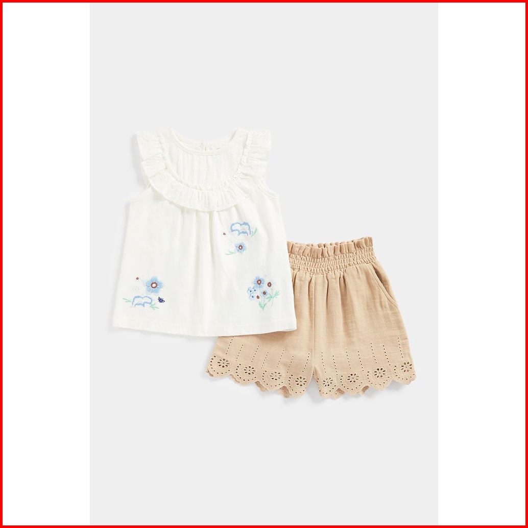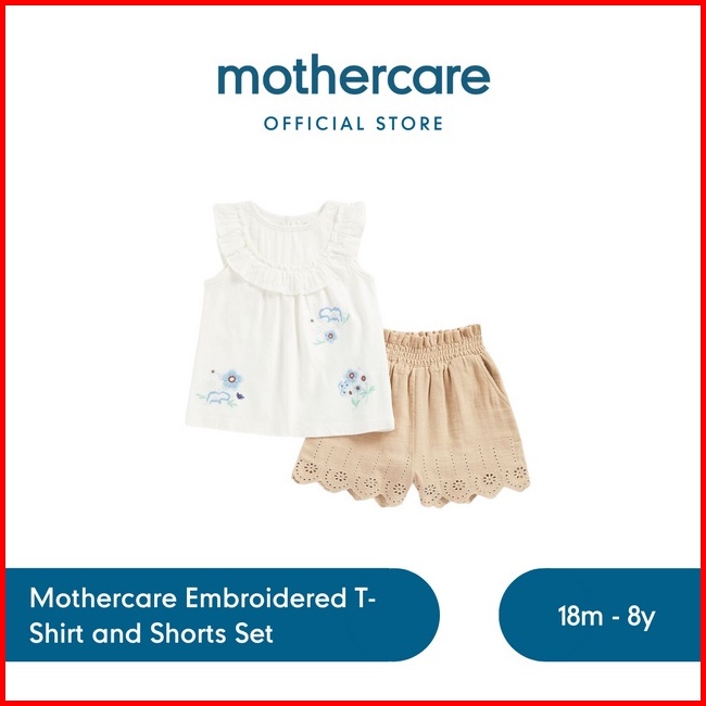 Mothercare Embroidered T-shirt And Shorts Set - Set Pakaian Anak Perempuan Putih