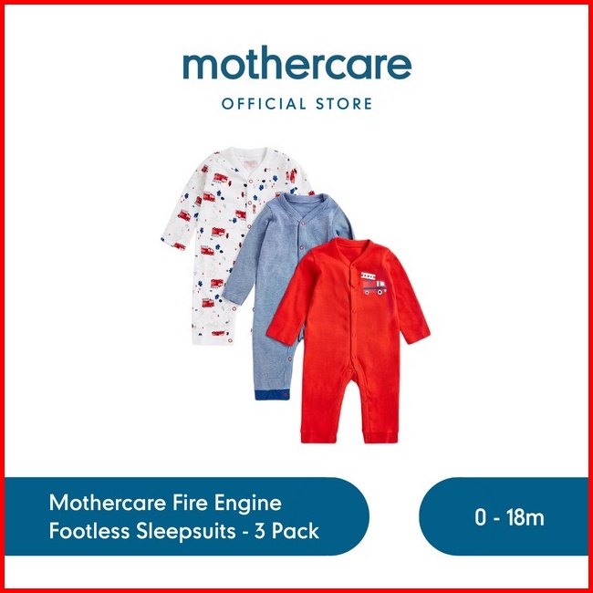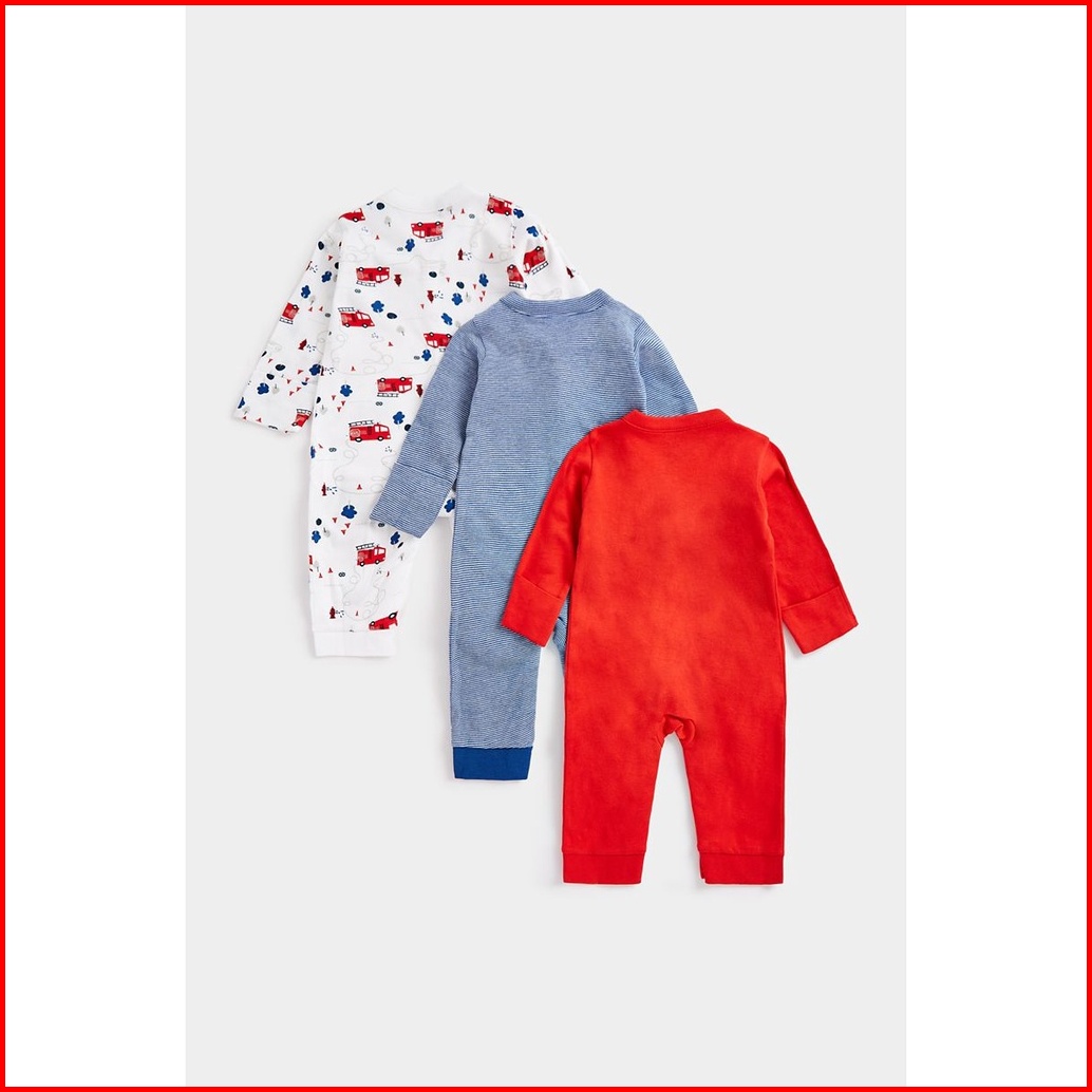Mothercare Fire Engine Footless Sleepsuits - 3 Pack - Set Terusan Bayi Laki-laki Multicolor