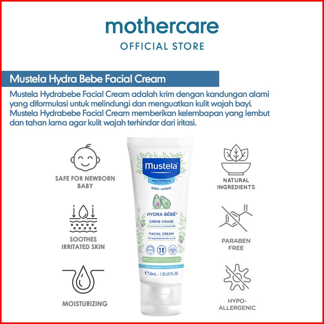 Mustela Hydra Facial Cream 40ml - Krim Wajah Anak Bayi Mothercare