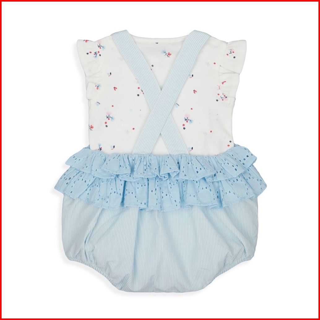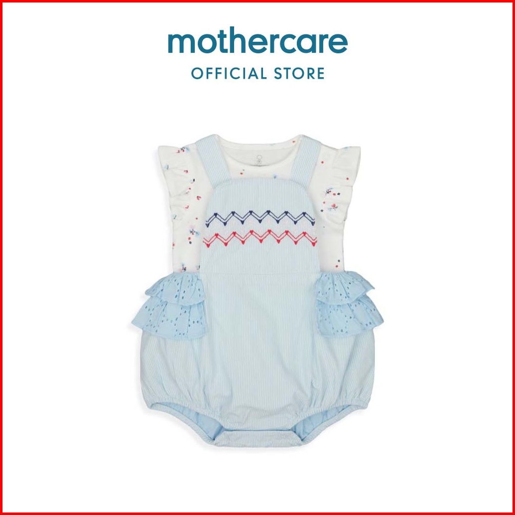 Mothercare Blue Striped Bibshorts And Bodysuit Set - Setelan Terusan Bayi Perempuan Multicolor