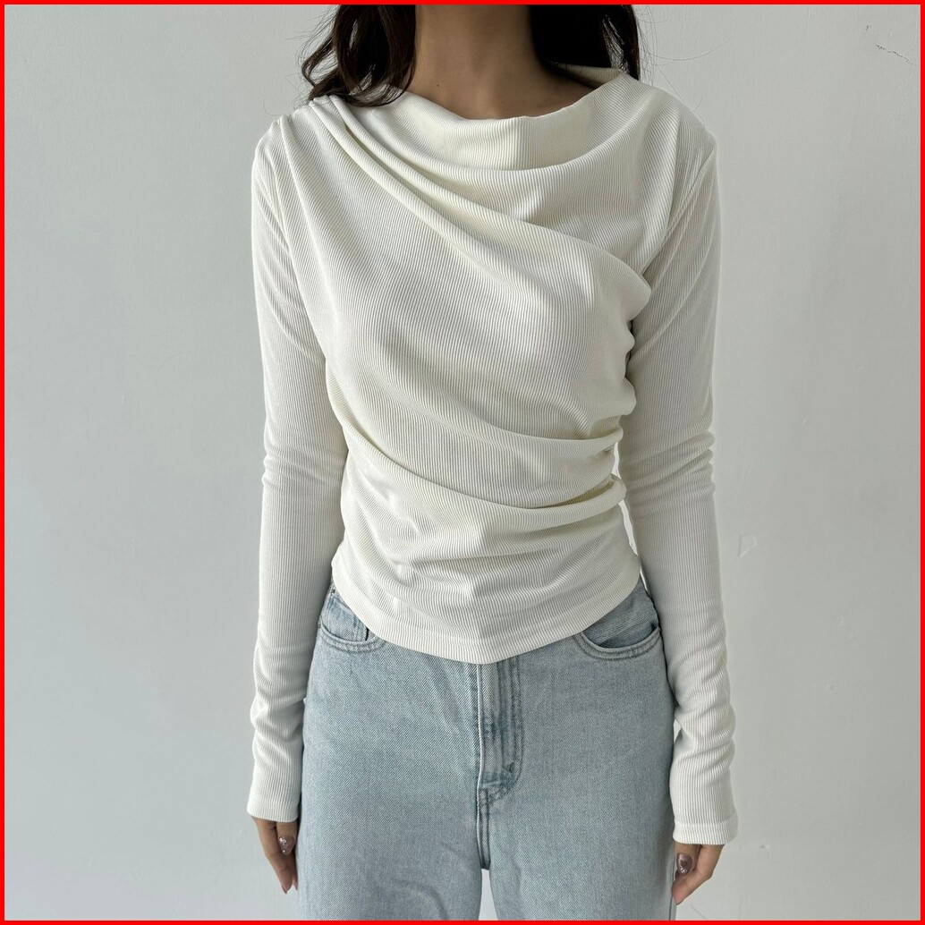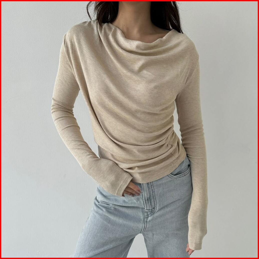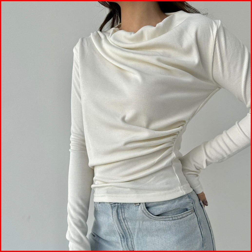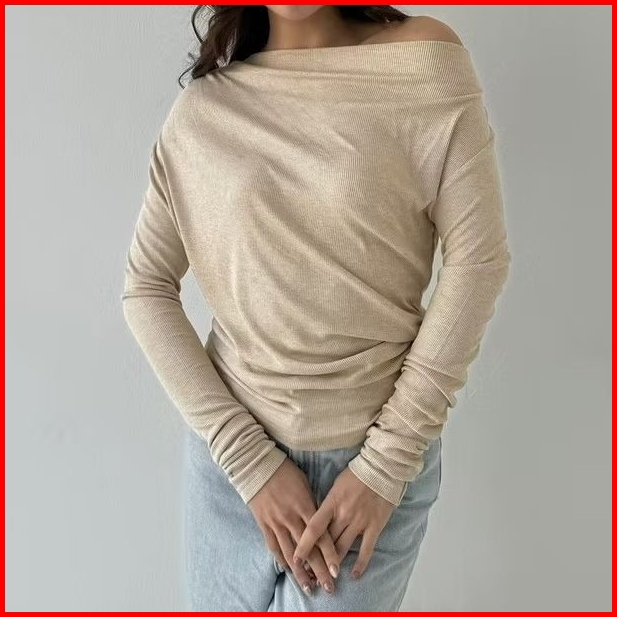 Deepa April Top - Atasan Knit Wanita Korean Top Baju Knit Wanita Lengan Panjang Basic Long Sleeve