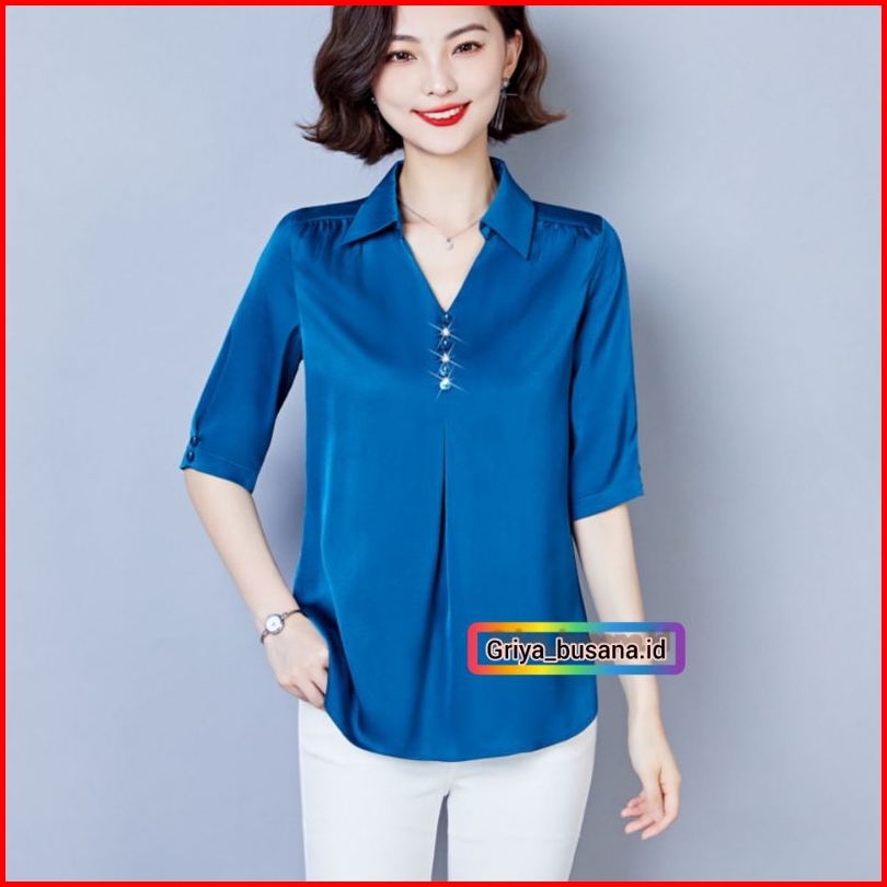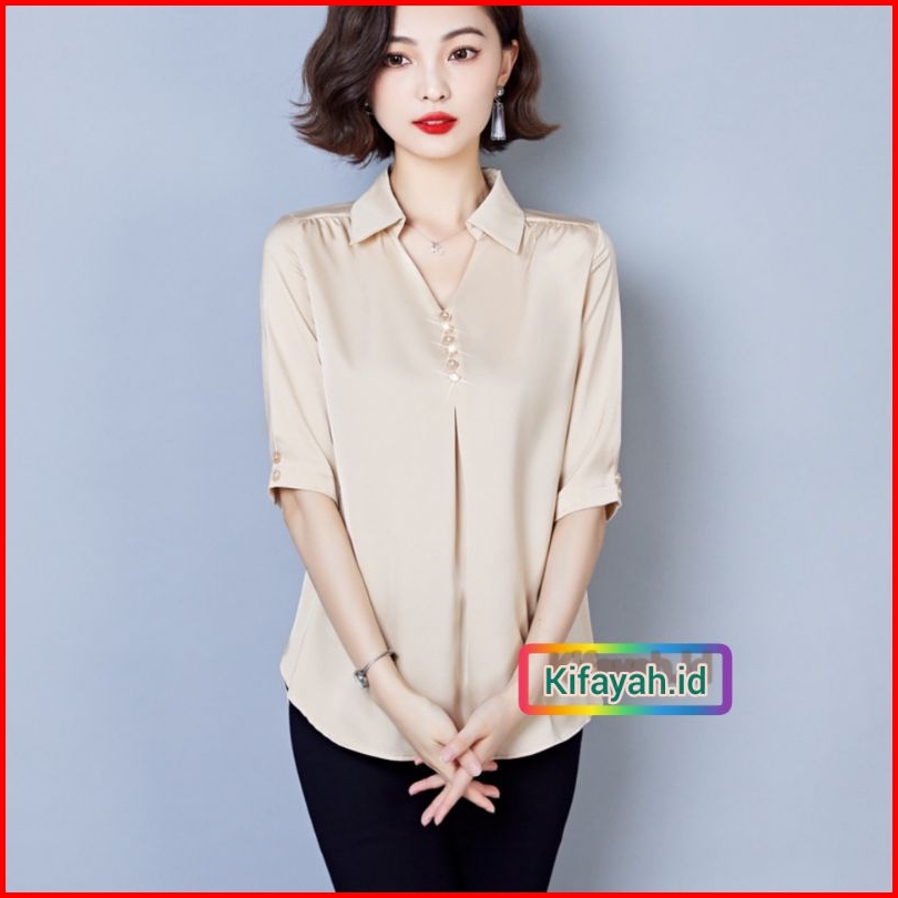 Baju Wanita Kekinian Korean Blouse Top Square Neck Velvet Kemeja Kerja Gaya Korea Long Sleeve