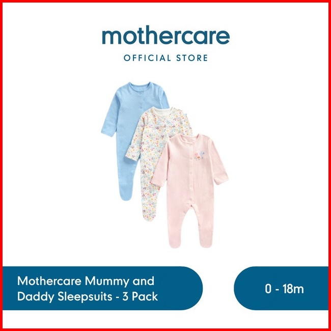 Mothercare Mummy And Daddy Sleepsuits - 3 Pack - Set Baju Tidur Bayi Perempuan Multicolor