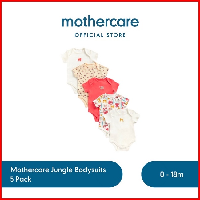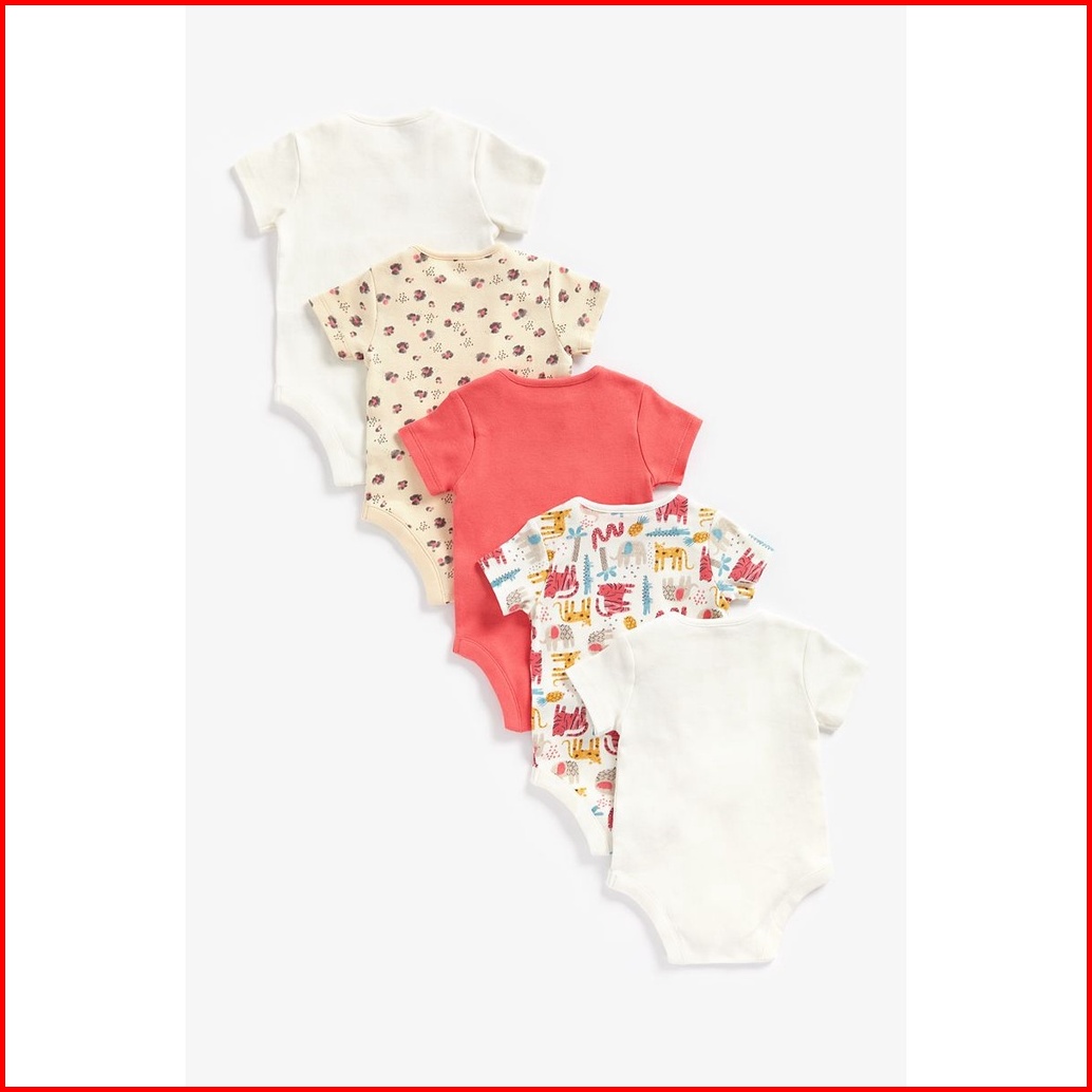 Mothercare Jungle Bodysuits - 5 Pack - Set Terusan Bayi Perempuan Multicolor