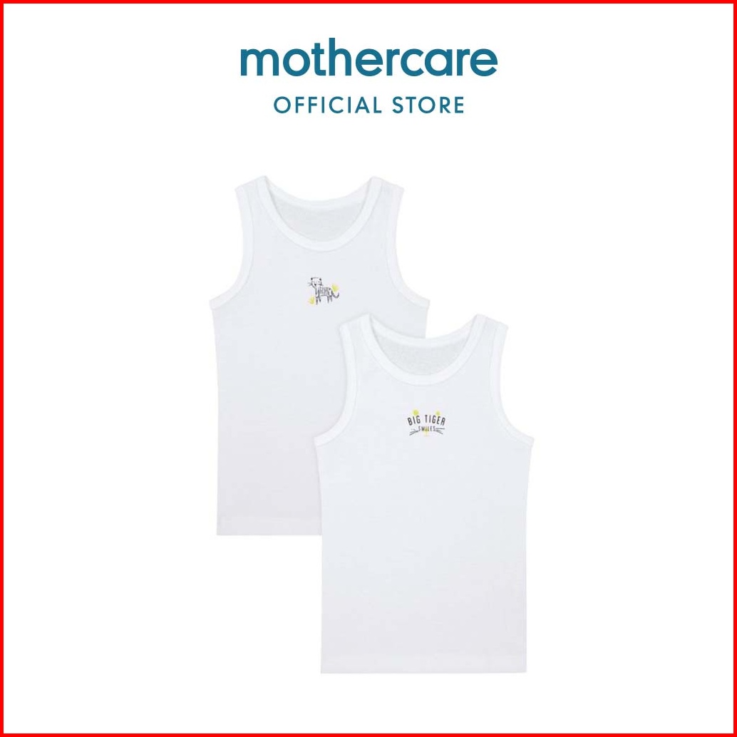 Mothercare Big Tiger Smiles White Vests 2 Pcs - Set Pakaian Dalam Anak Laki-laki Putih