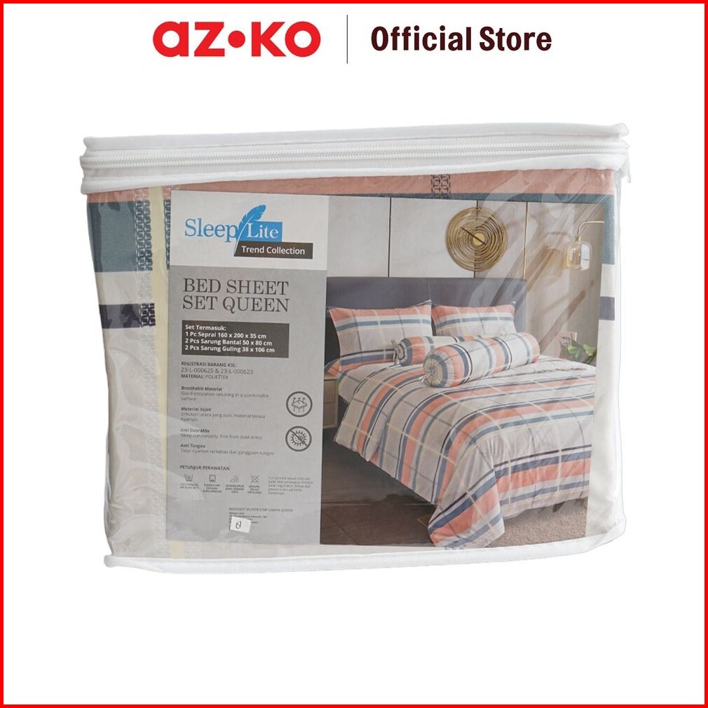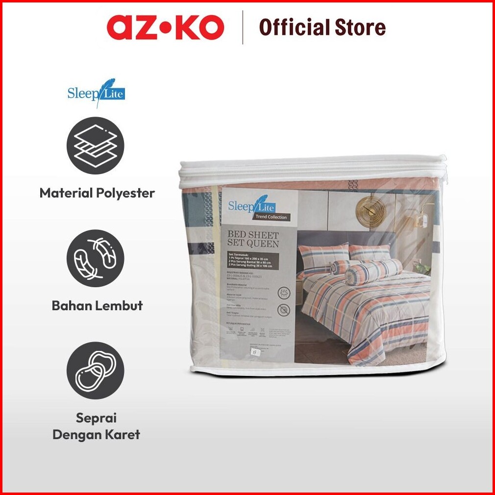 Azko Sleeplite 160x200 Cm Set 5 Pcs Seprai Queen Polyester Stripe Caspia Sprei Motif Seprai Aesthetic Seprei Sheet Set B
