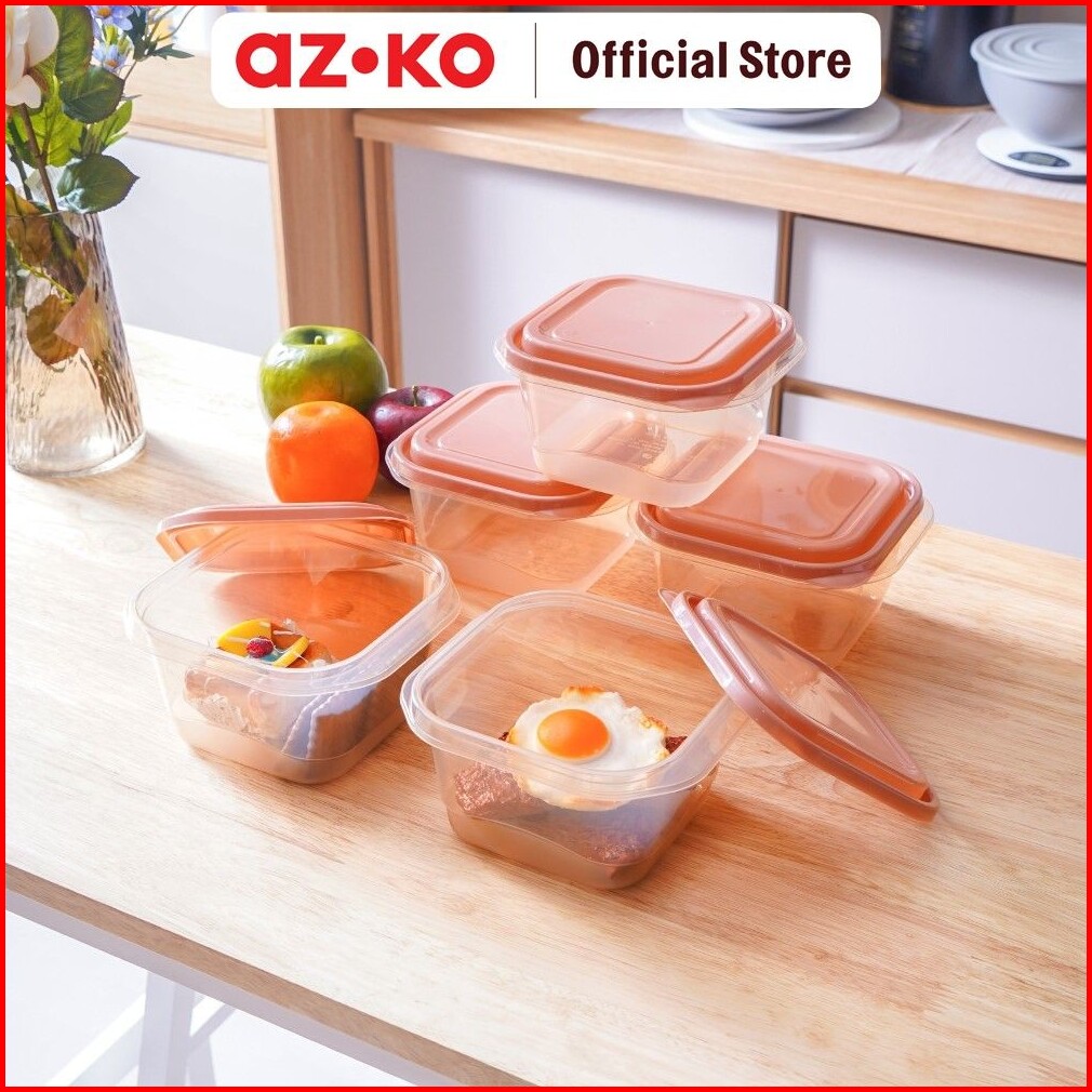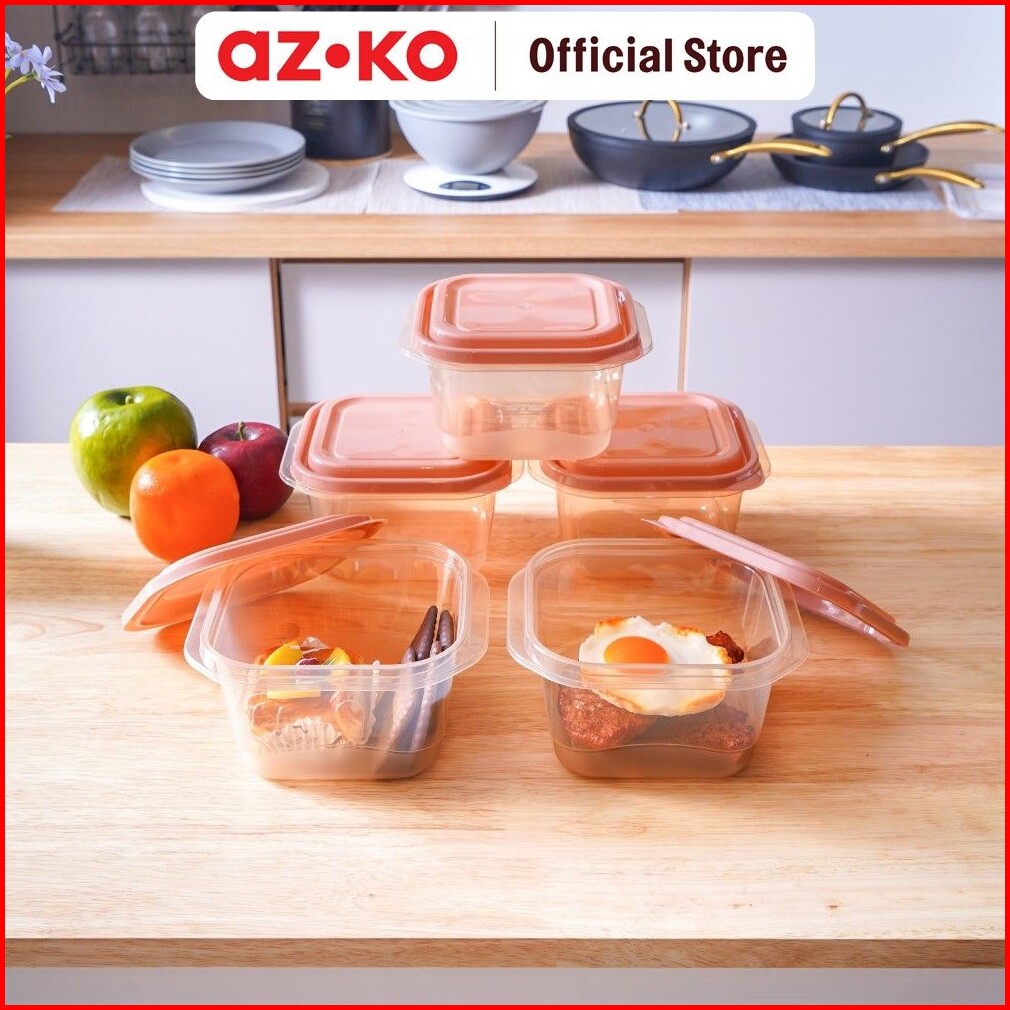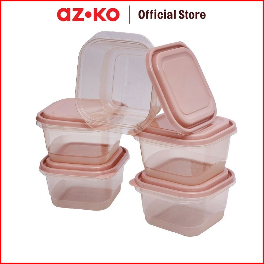 Azko Kris 1 Ltr Set 5 Pcs Milly Wadah Makanan Square - Pink Coral Food Container Kotak Makan Food Grade Serbaguna Tempat