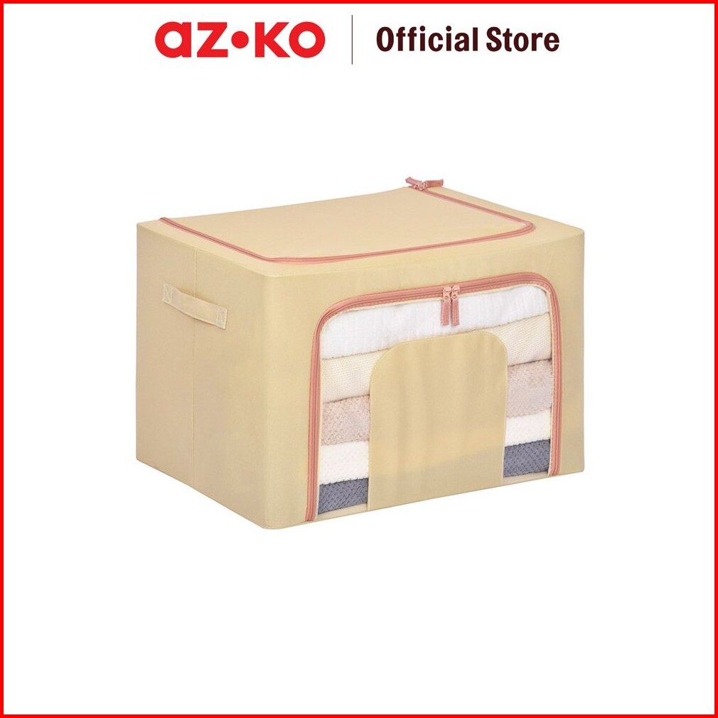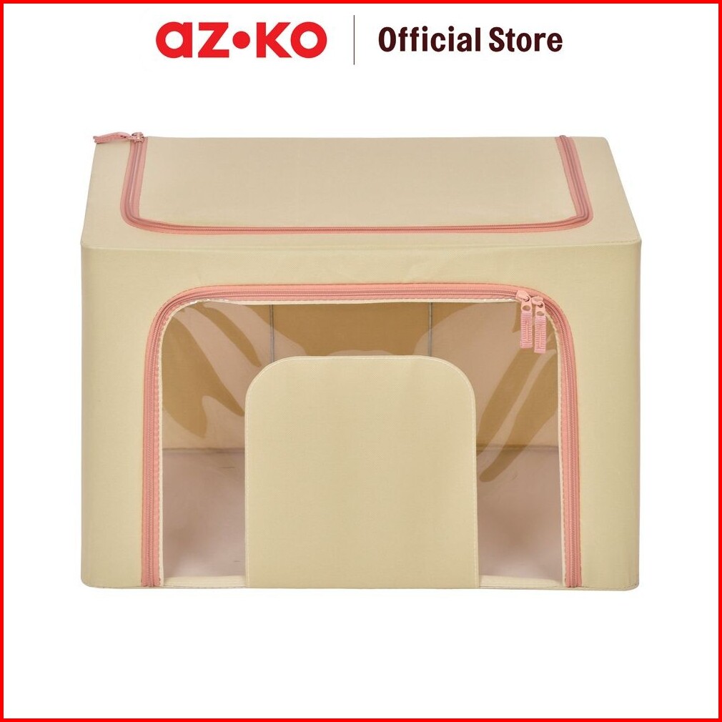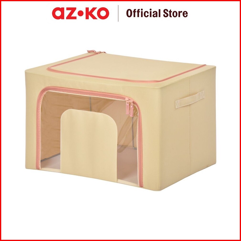 Azko Stora 50x40x33 Cm Kotak Penyimpanan Lipat Ritsleting - Krem Beige Wadah Kotak Simpan Serbaguna Foldable Storage Box