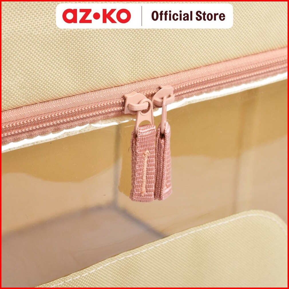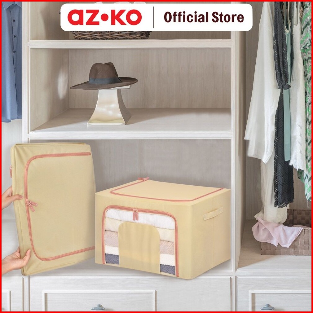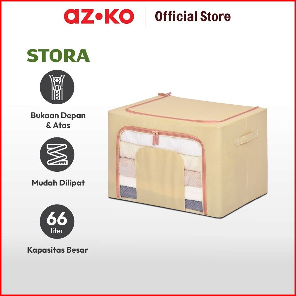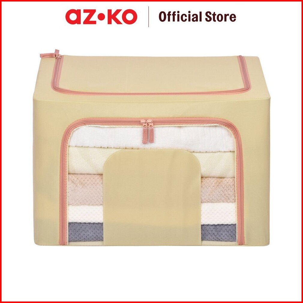 Azko Stora 50x40x33 Cm Kotak Penyimpanan Lipat Ritsleting - Krem Beige Wadah Kotak Simpan Serbaguna Foldable Storage Box