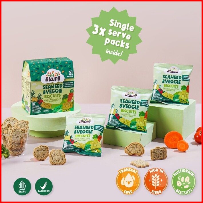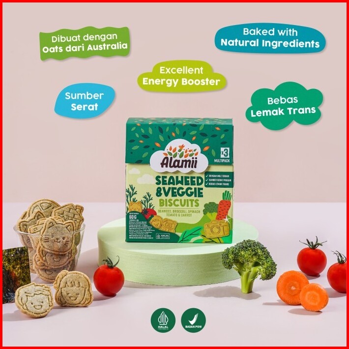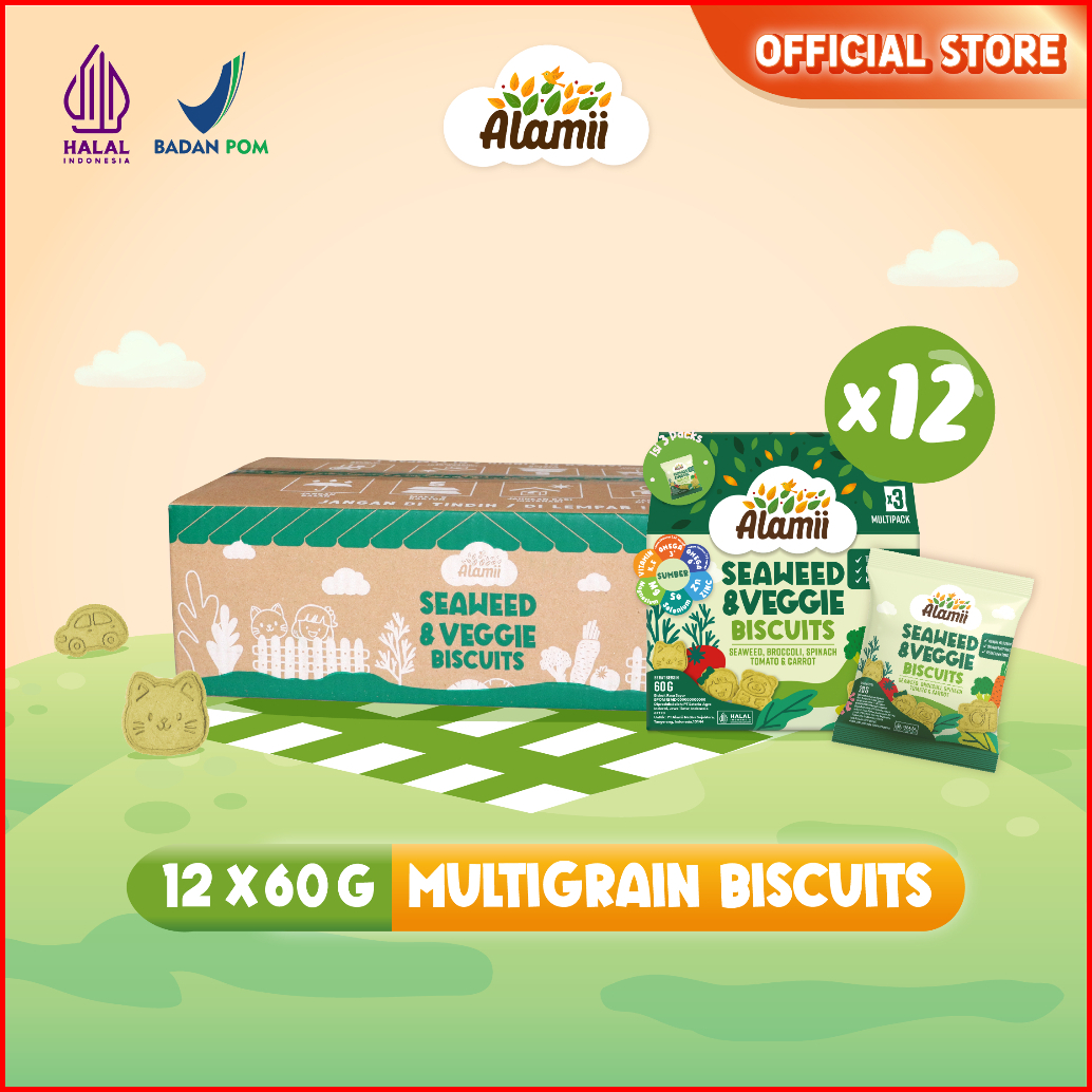 Alamii Multigrain Biscuits - Bundle Isi 12 X 60g 3 Packs X 20g Seaweed Veggie Cemilan Sehat Bayi Anak