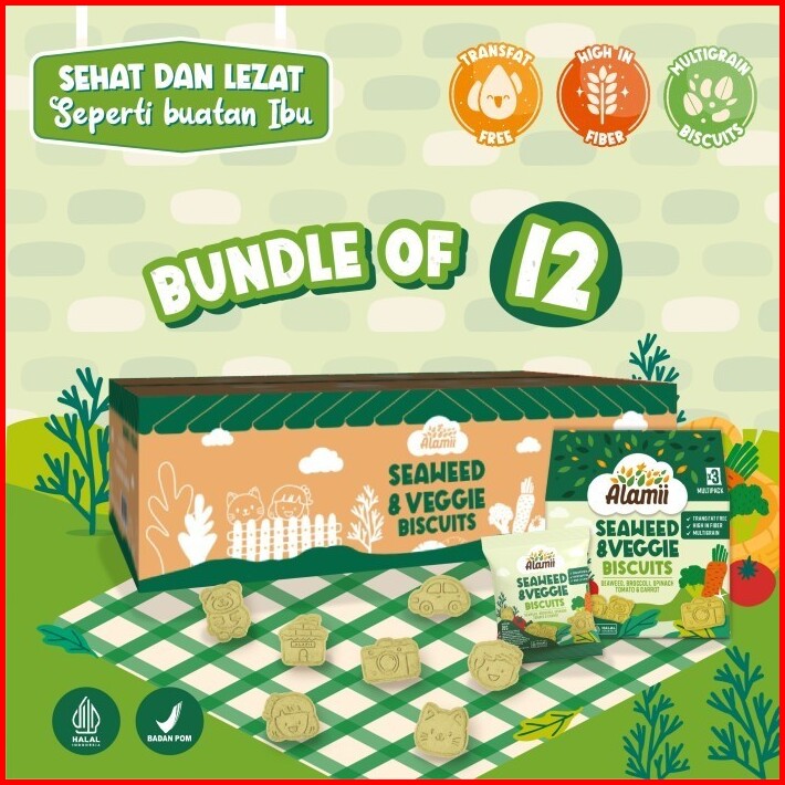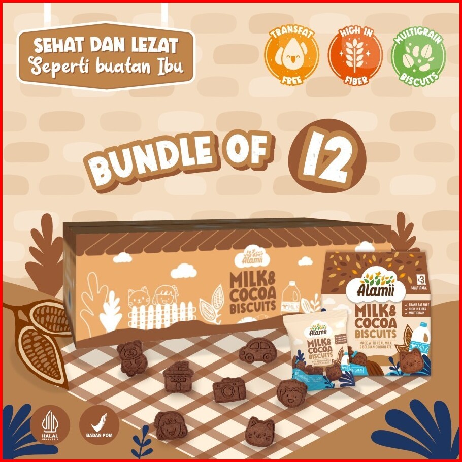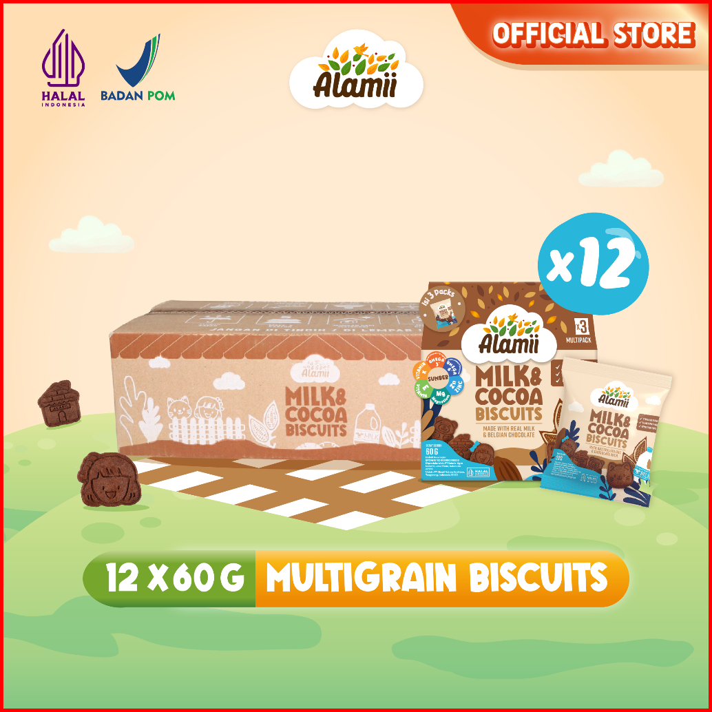 Alamii Multigrain Biscuits - Bundle Isi 12 X 60g 3 Packs X 20g Milk Cocoa Cemilan Sehat Bayi Anak