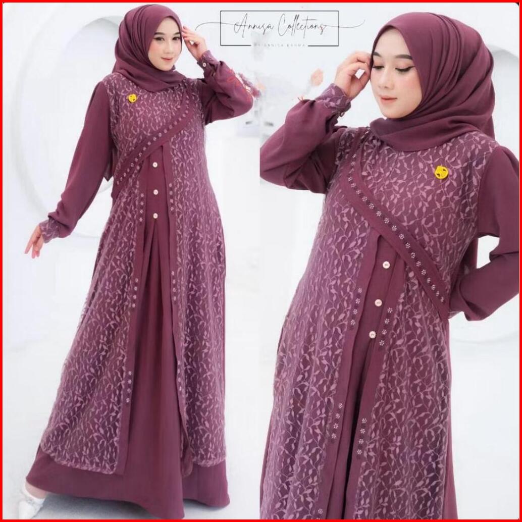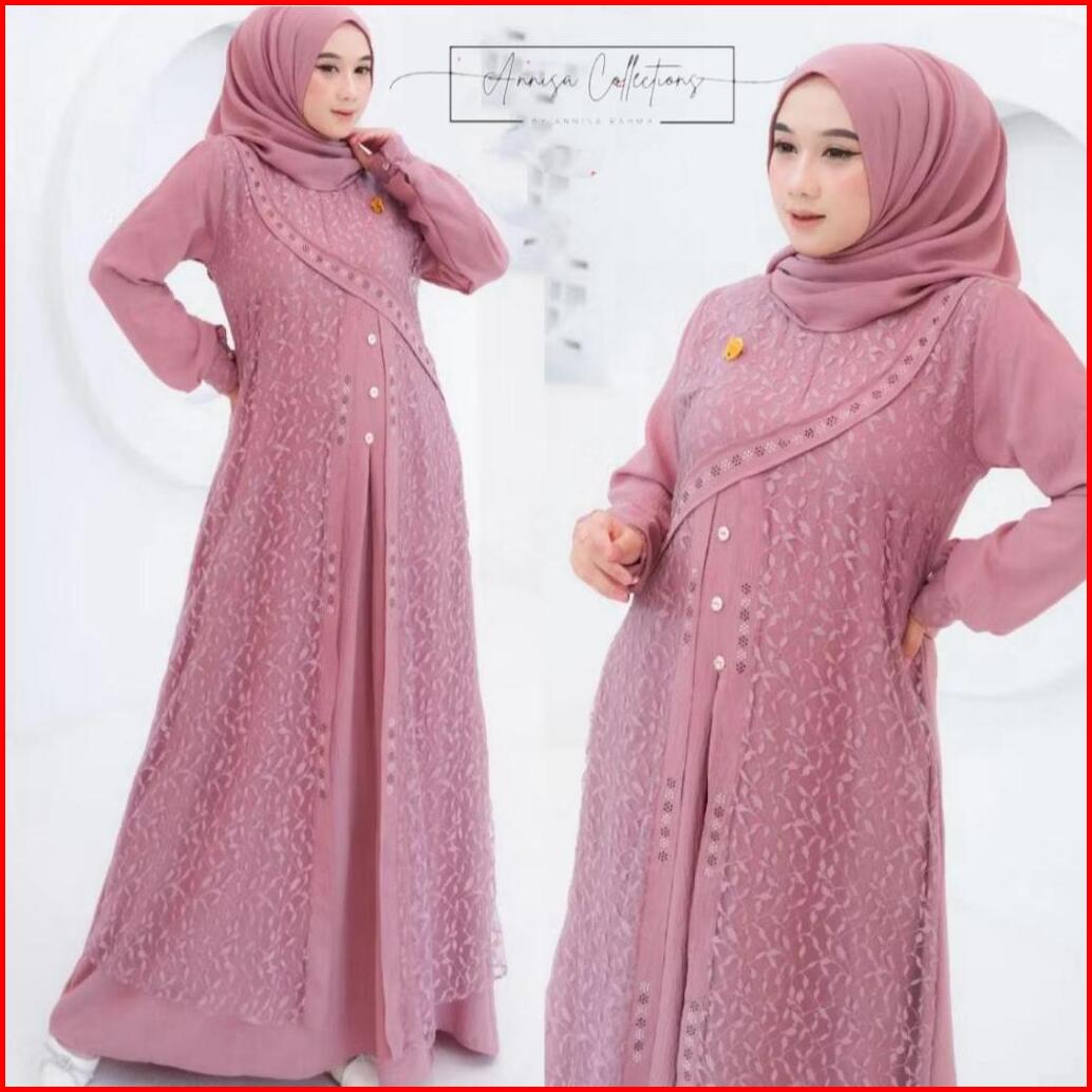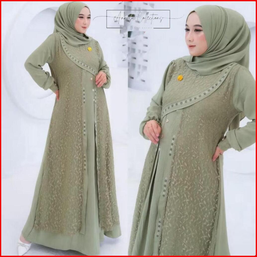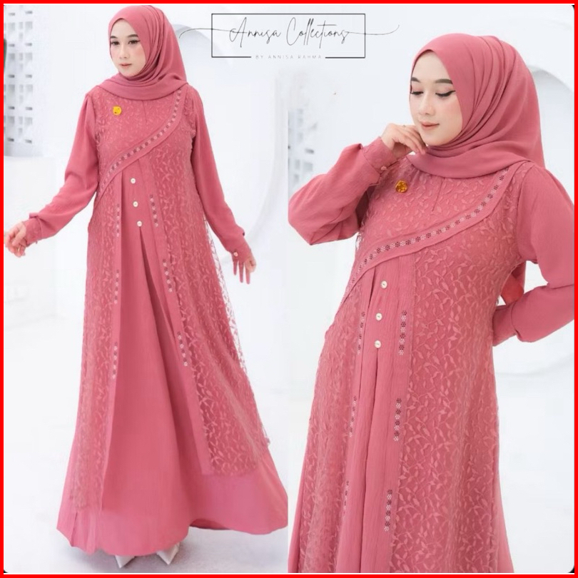 Melissa Dress Gamis Crinkle Mix Brukat Airflow Gamis Terbaru 2024