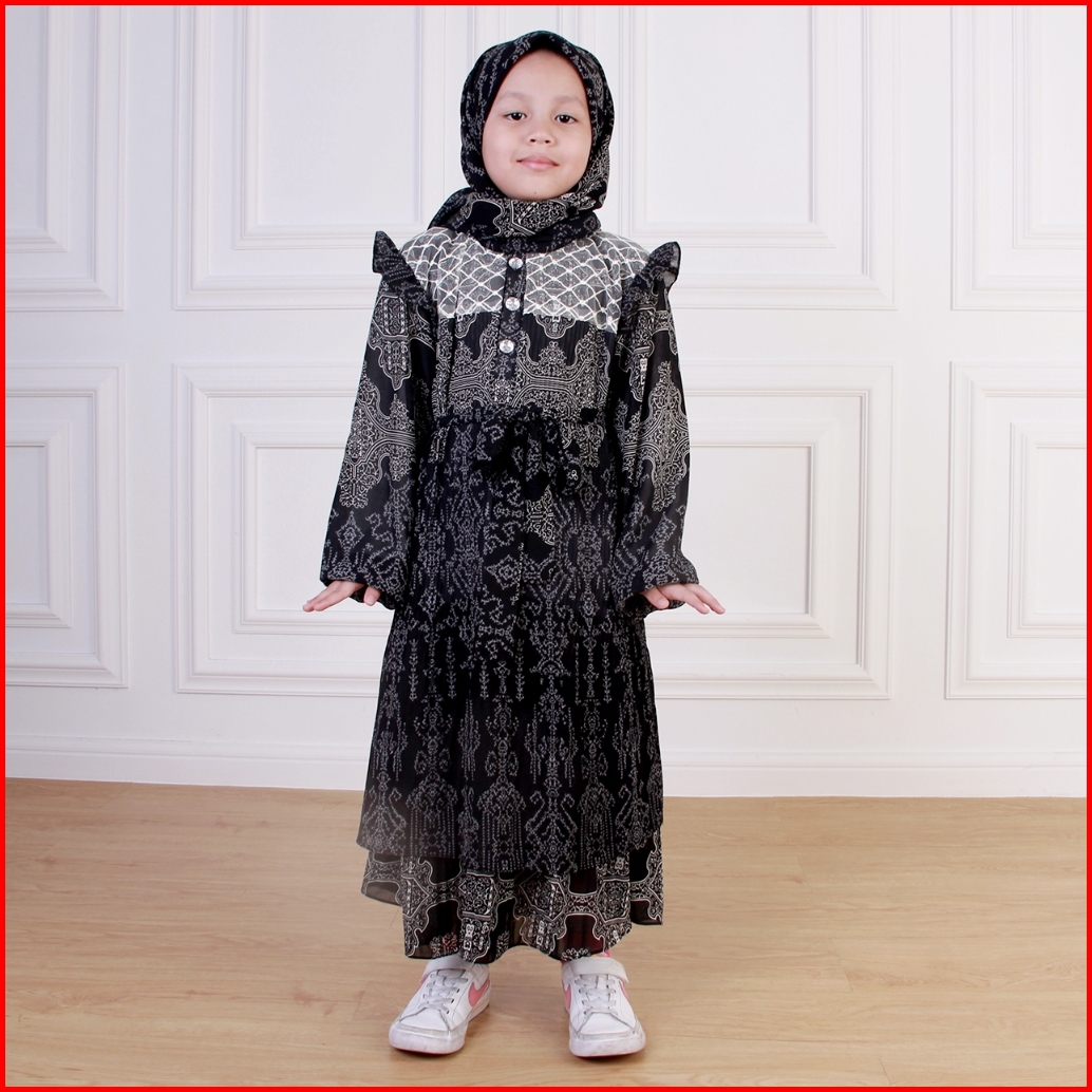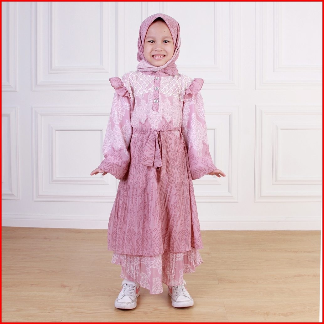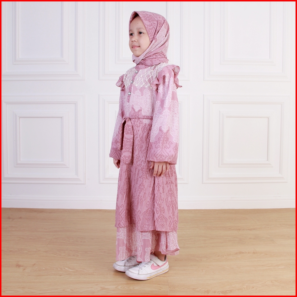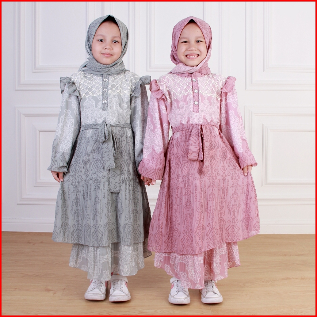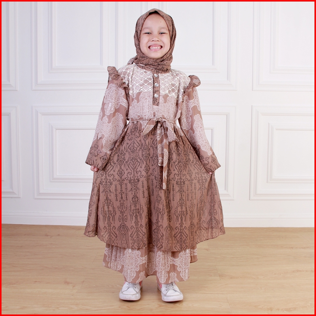 Dungdungkids Gamis Anak Silvia Umpak Brukat Ceruty Etnik Free Pashmina 4 - 12 Tahun