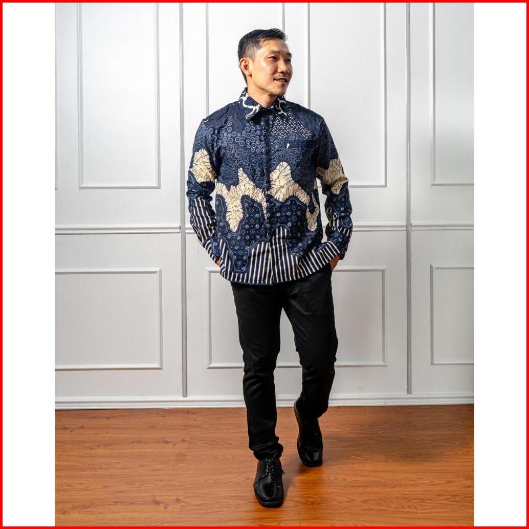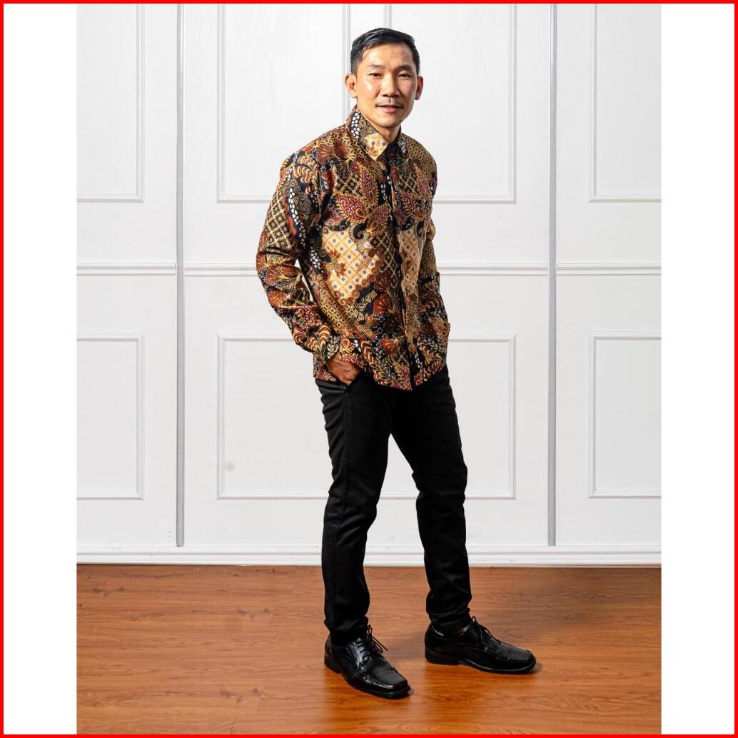 Redlove - Kemeja Pria Lengan Panjang Batik Modern Foil Semi Sultra Print