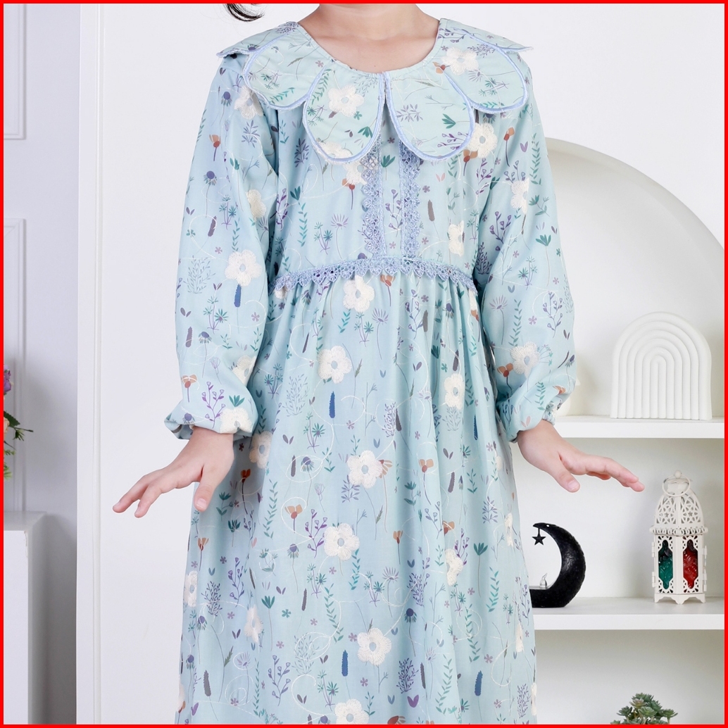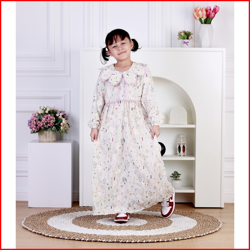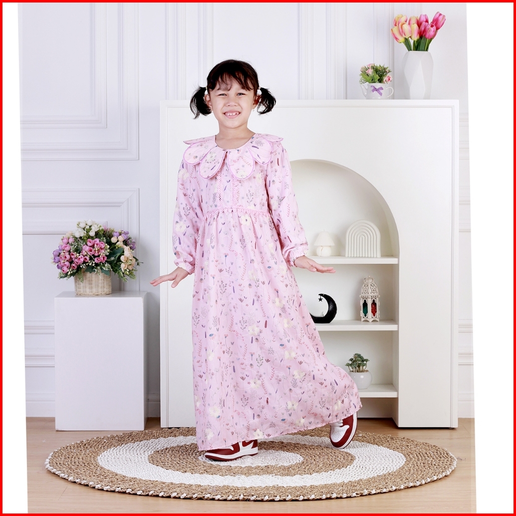 Dungdungkids Gamis Anak Asmita Katun Bordir Kerah Bunga 3 - 14 Tahun