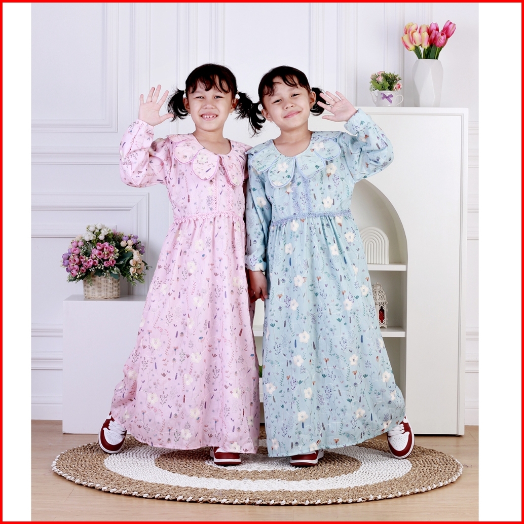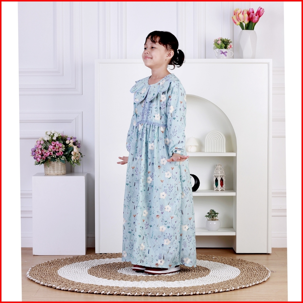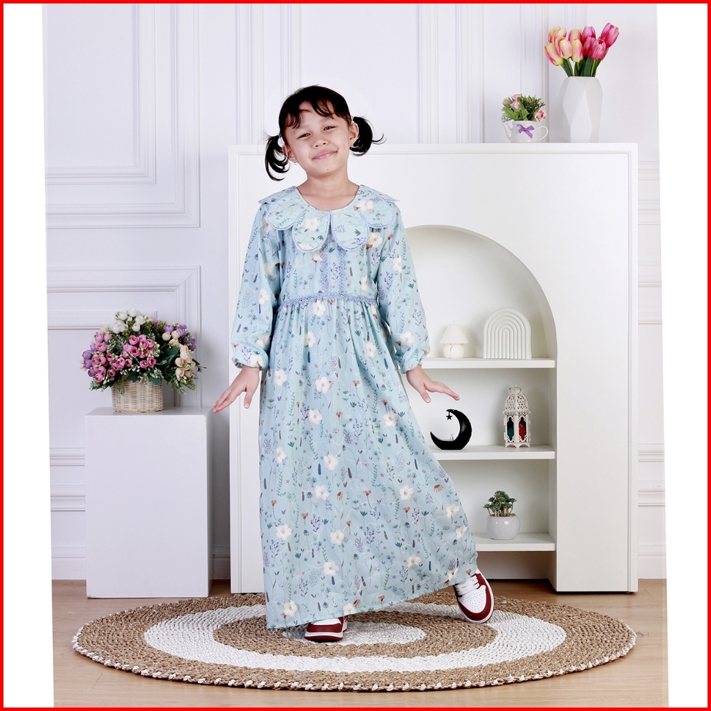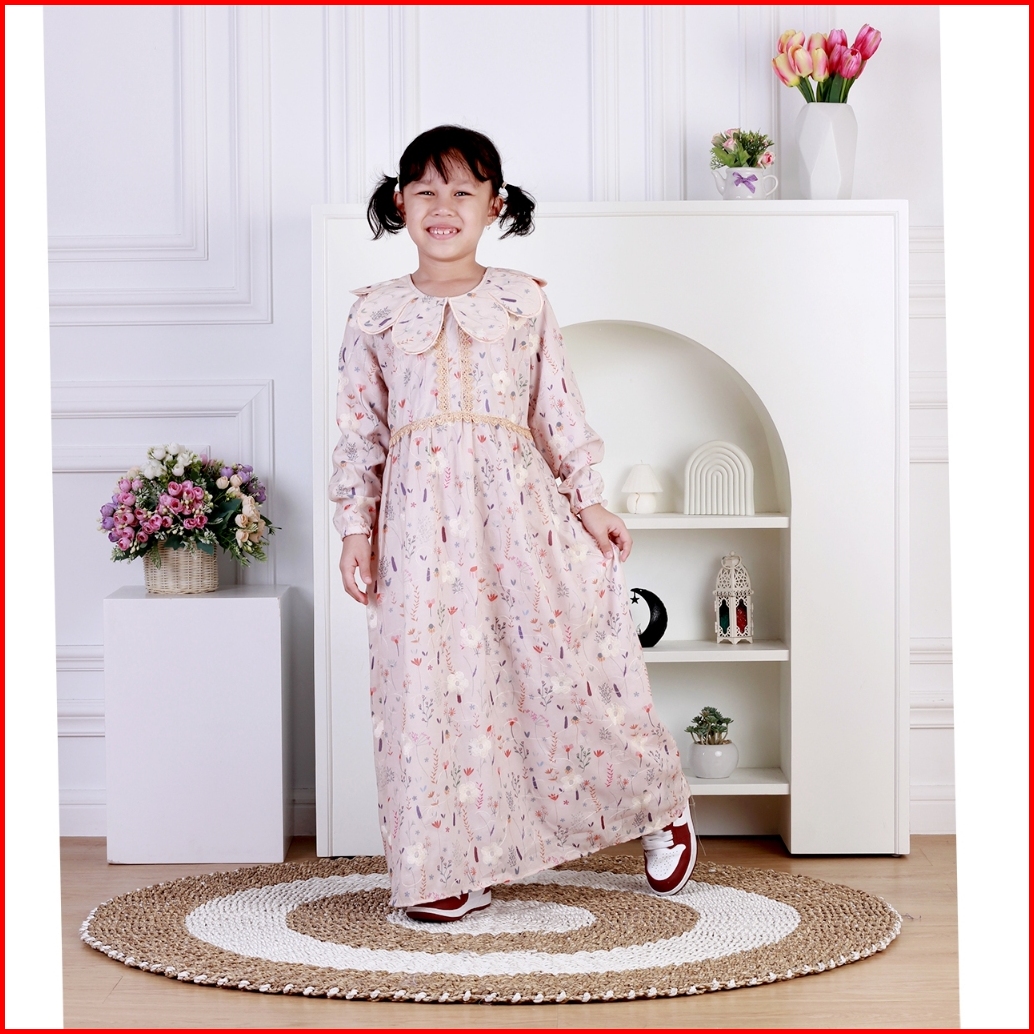 Dungdungkids Gamis Anak Asmita Katun Bordir Kerah Bunga 3 - 14 Tahun