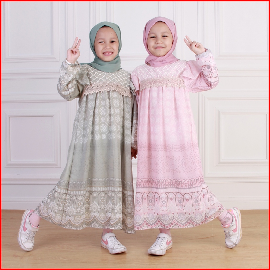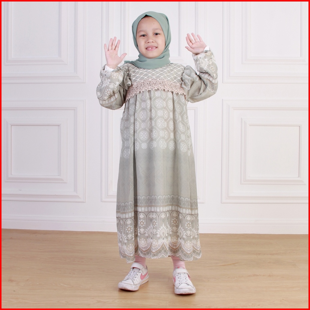 Dungdungkids Gamis Anak Suciana Ceruty Etnik Brukat Free Pashmina 3 - 11 Tahun