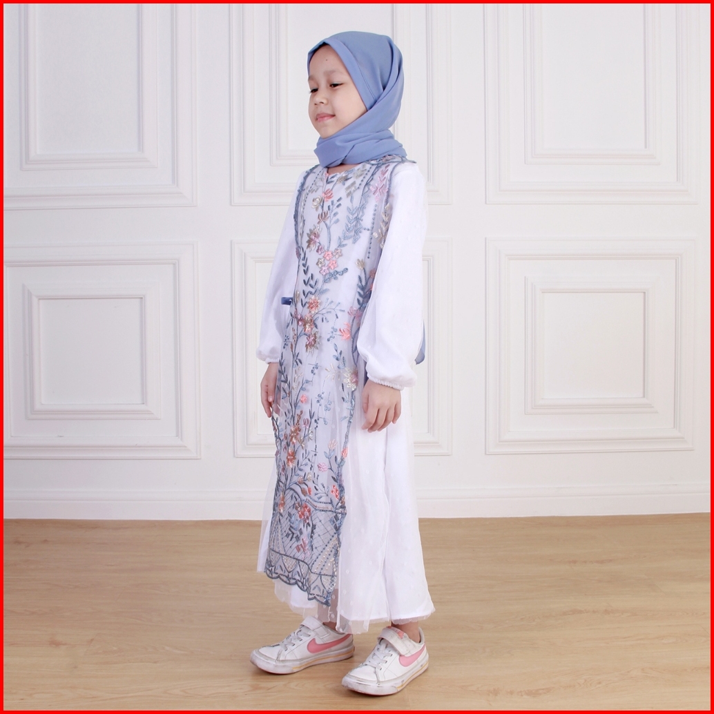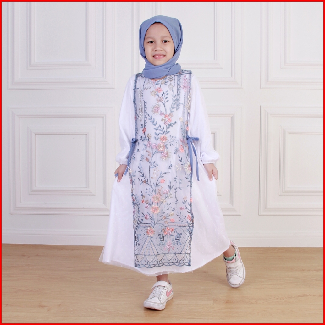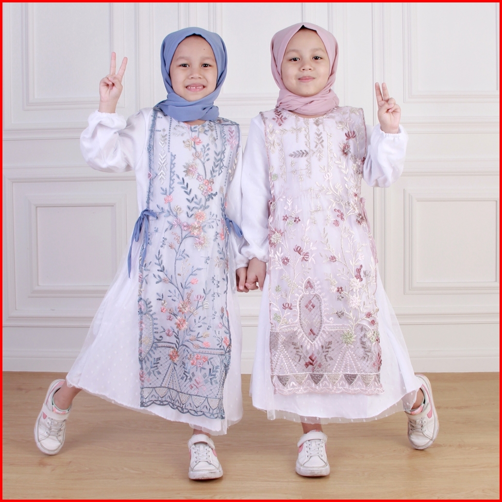 Dungdungkids Gamis Anak Audrey Tile Bordir Mix Shakila Free Pashmina Tali 3 - 12 Tahun