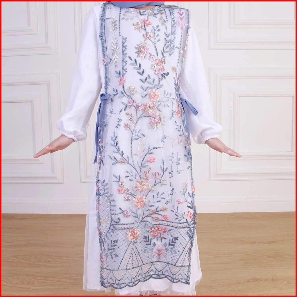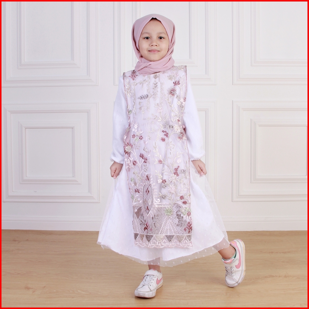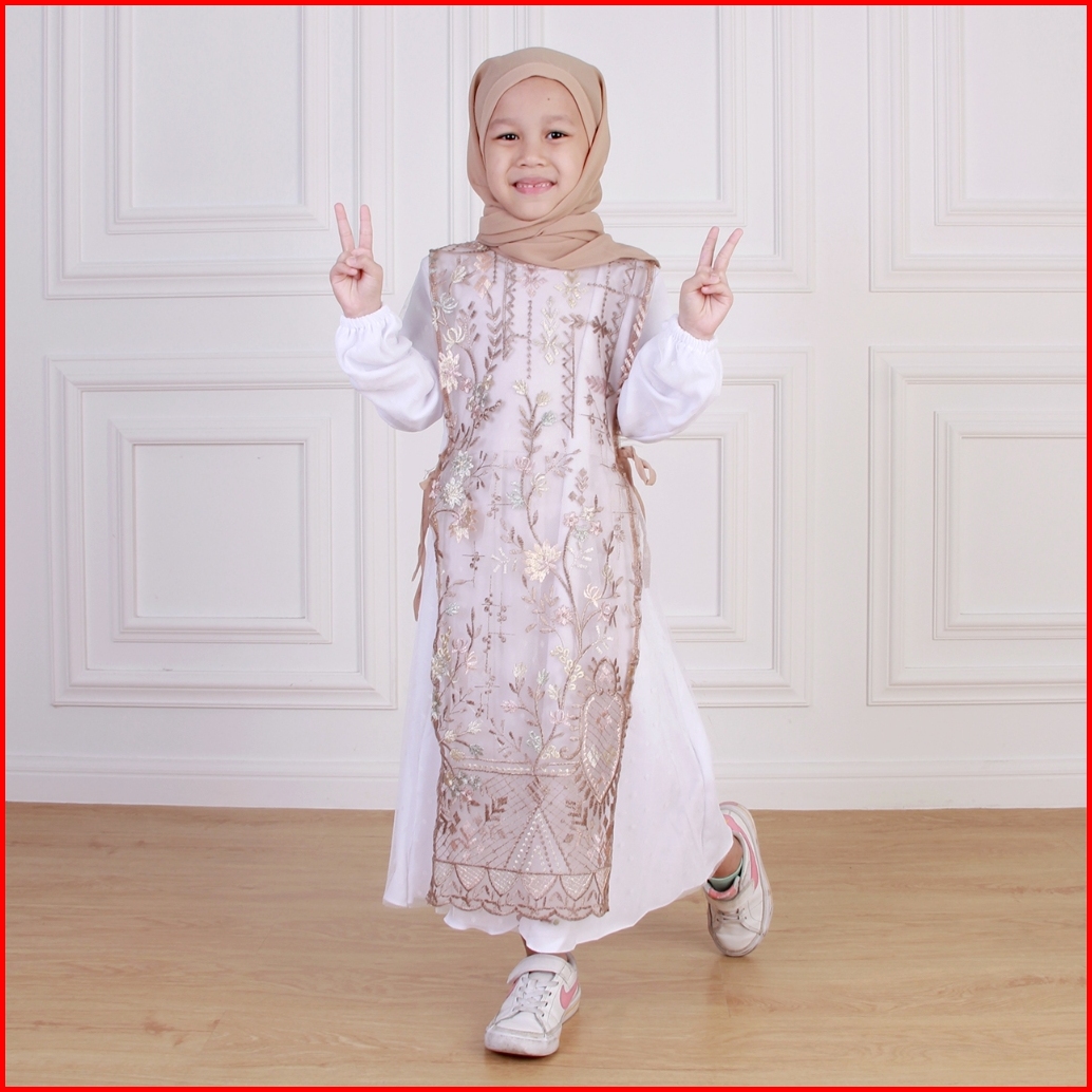 Dungdungkids Gamis Anak Audrey Tile Bordir Mix Shakila Free Pashmina Tali 3 - 12 Tahun