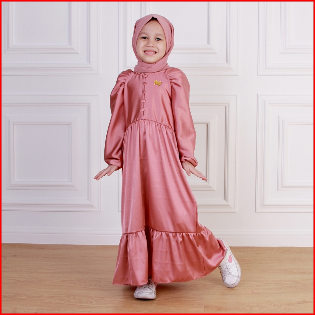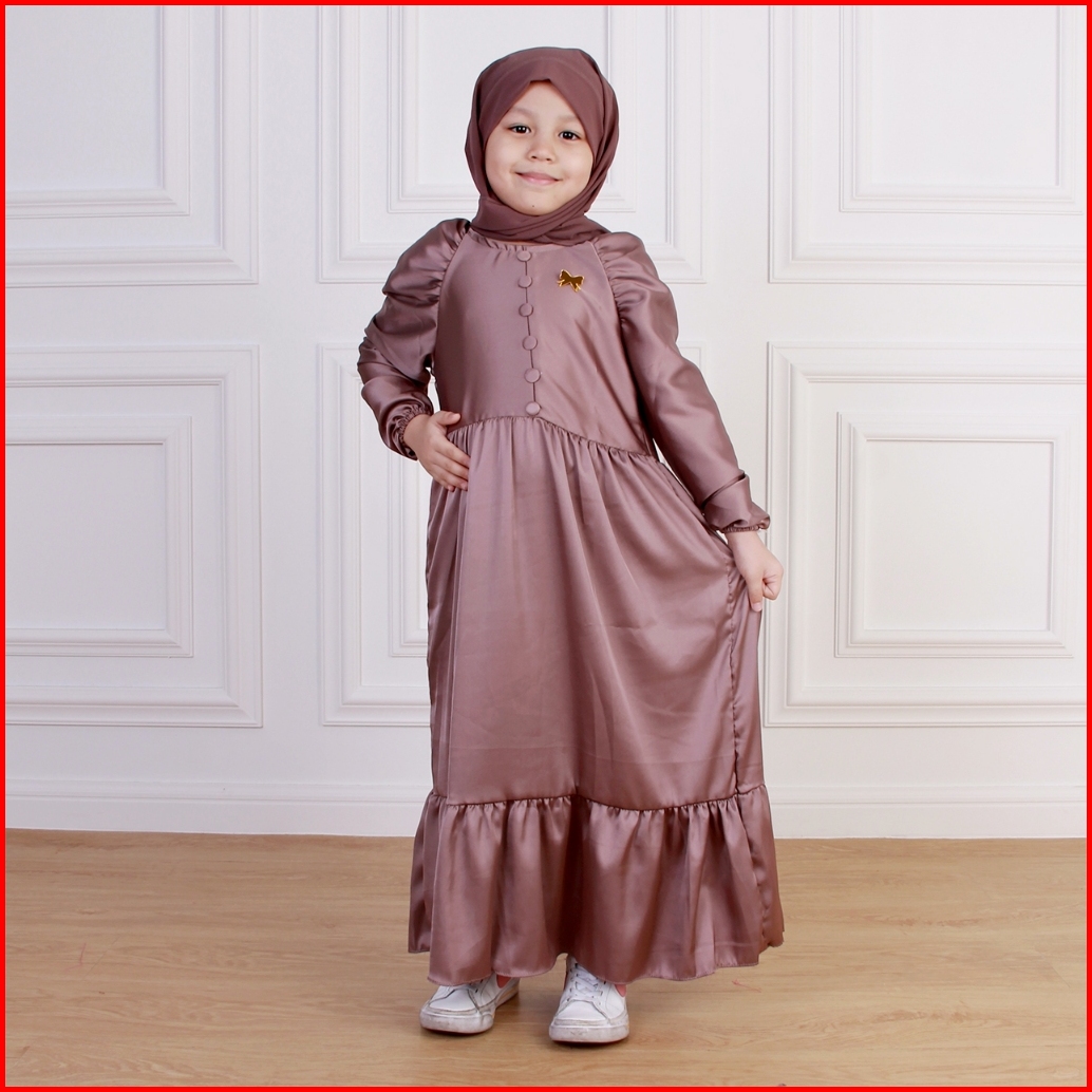 Gamis Anak Prily Premium Silk Free Pashmina Bross 3 - 12 Tahun