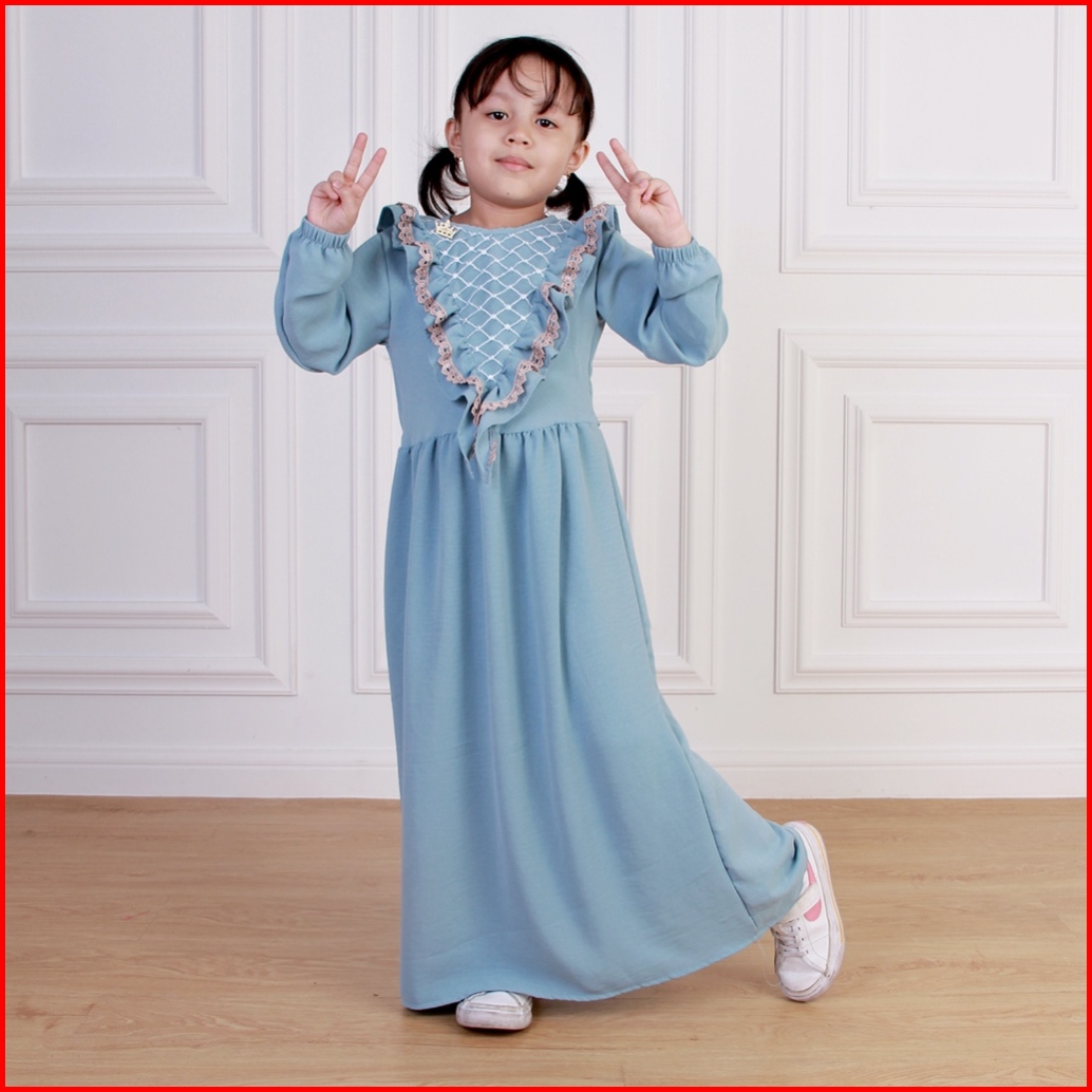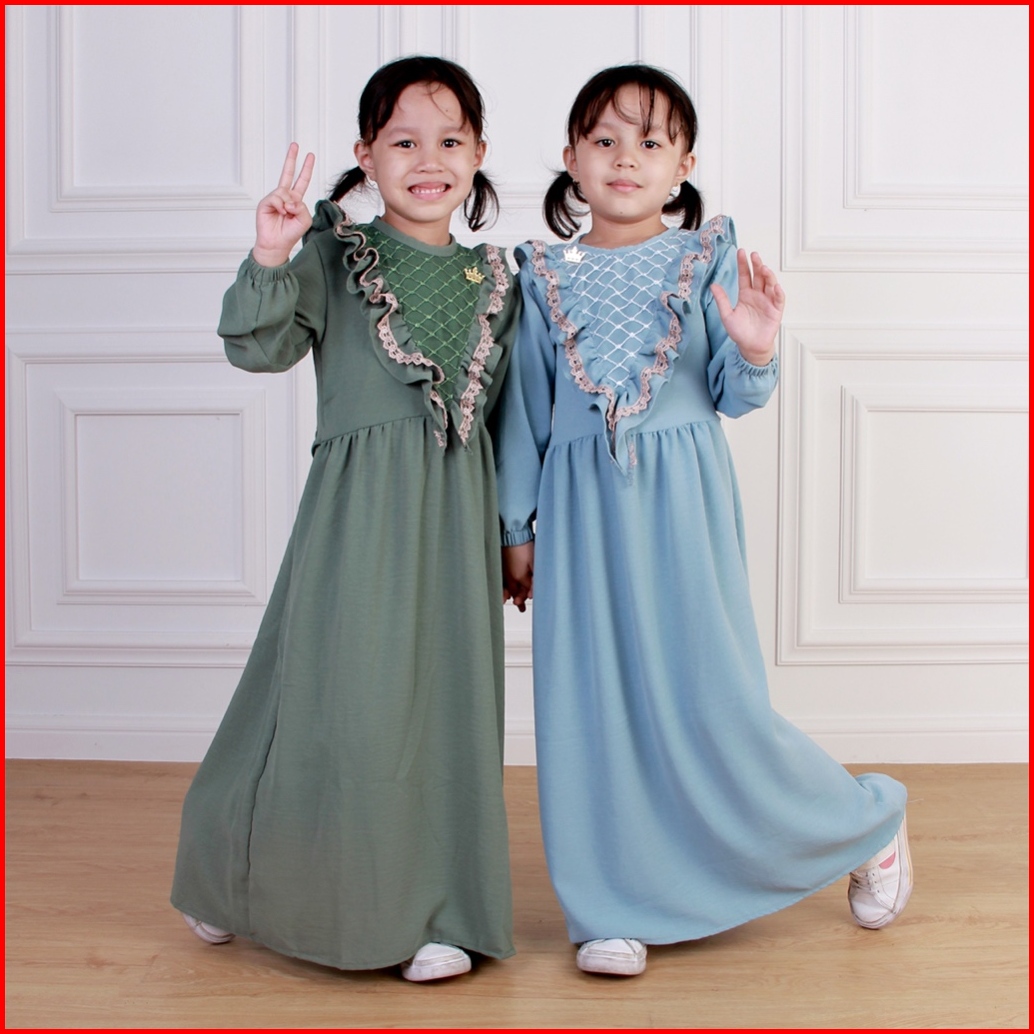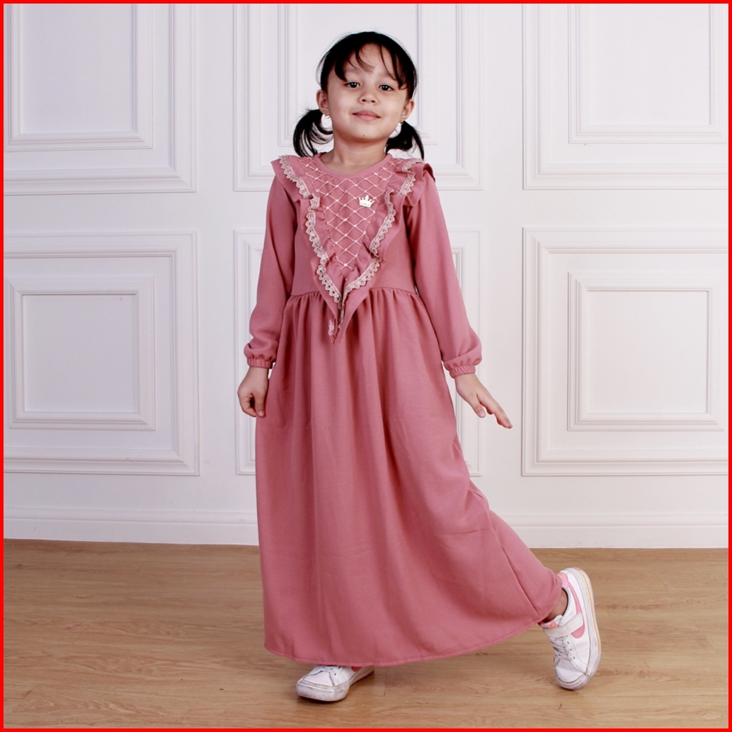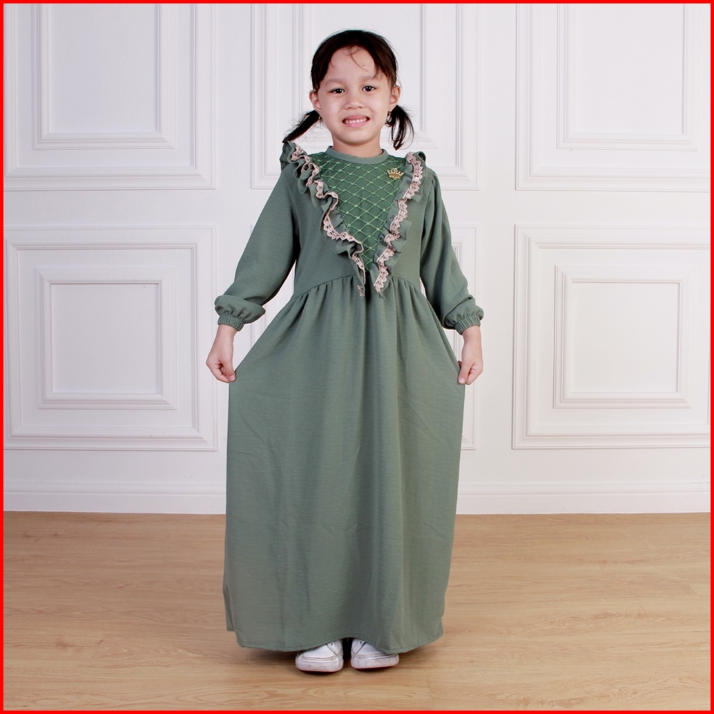 Gamis Anak Haruka Crinkle Airflow Brukat 5 - 12 Tahun