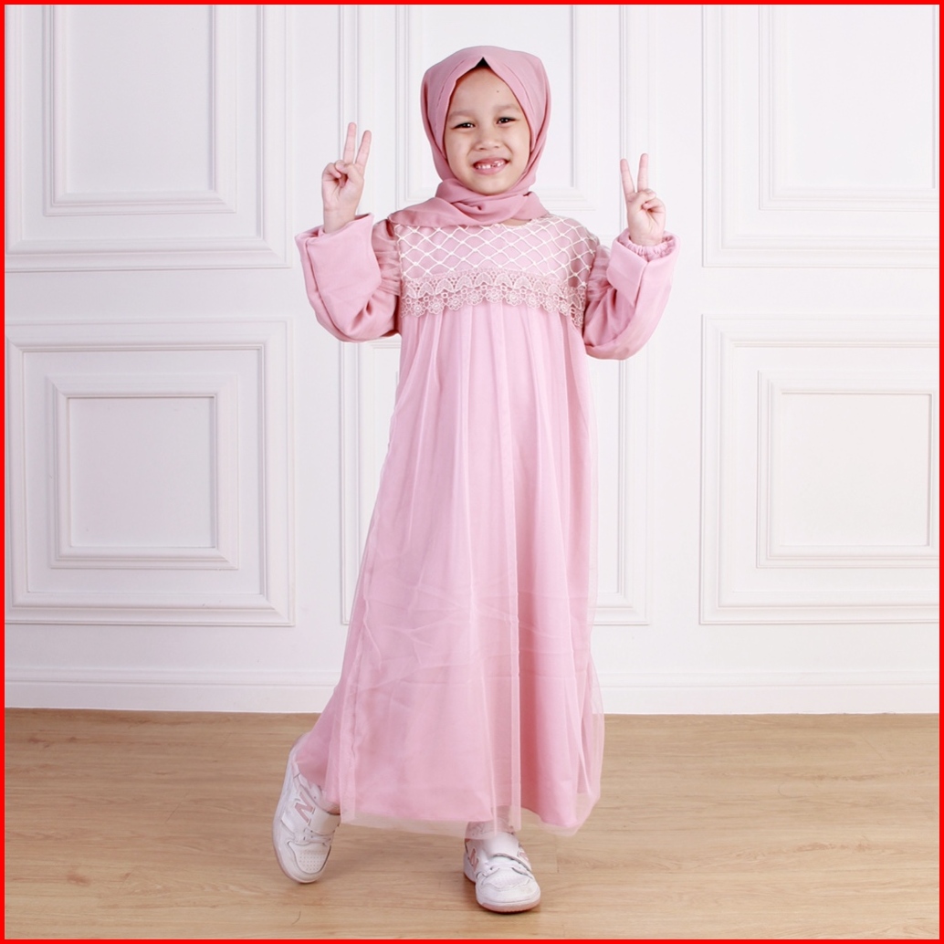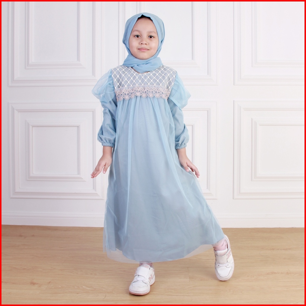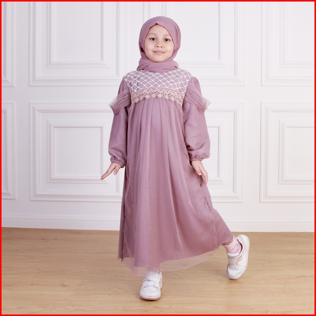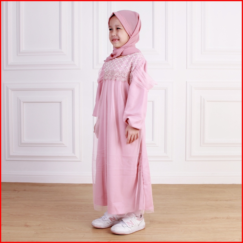 Dungdungkids Gamis Anak Adriana Shakila Mix Tile Dot Free Pashmina Tali 3 - 11 Tahun