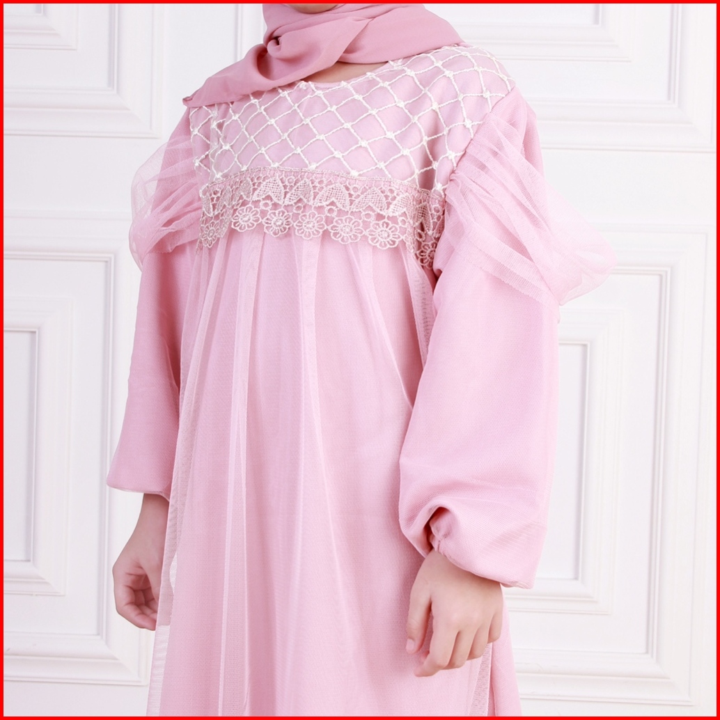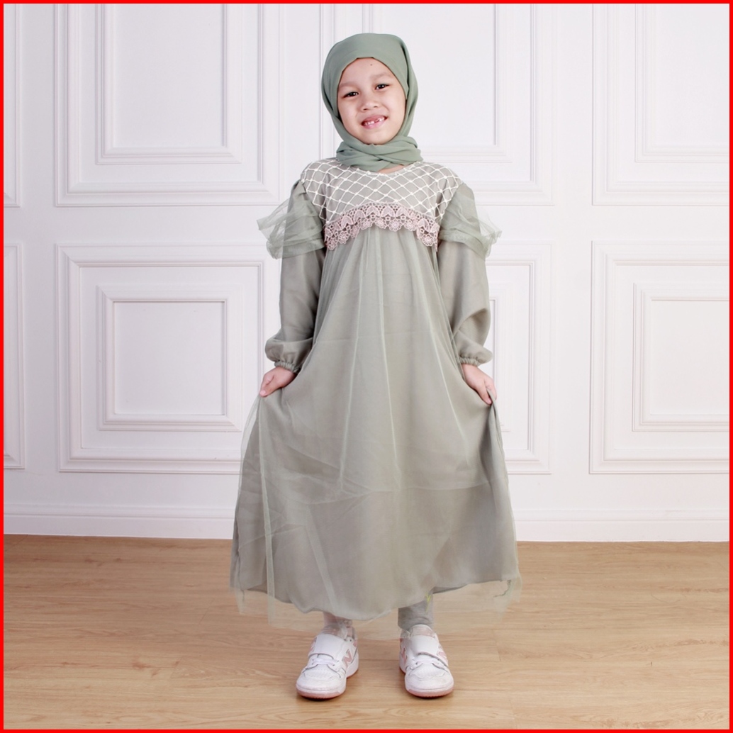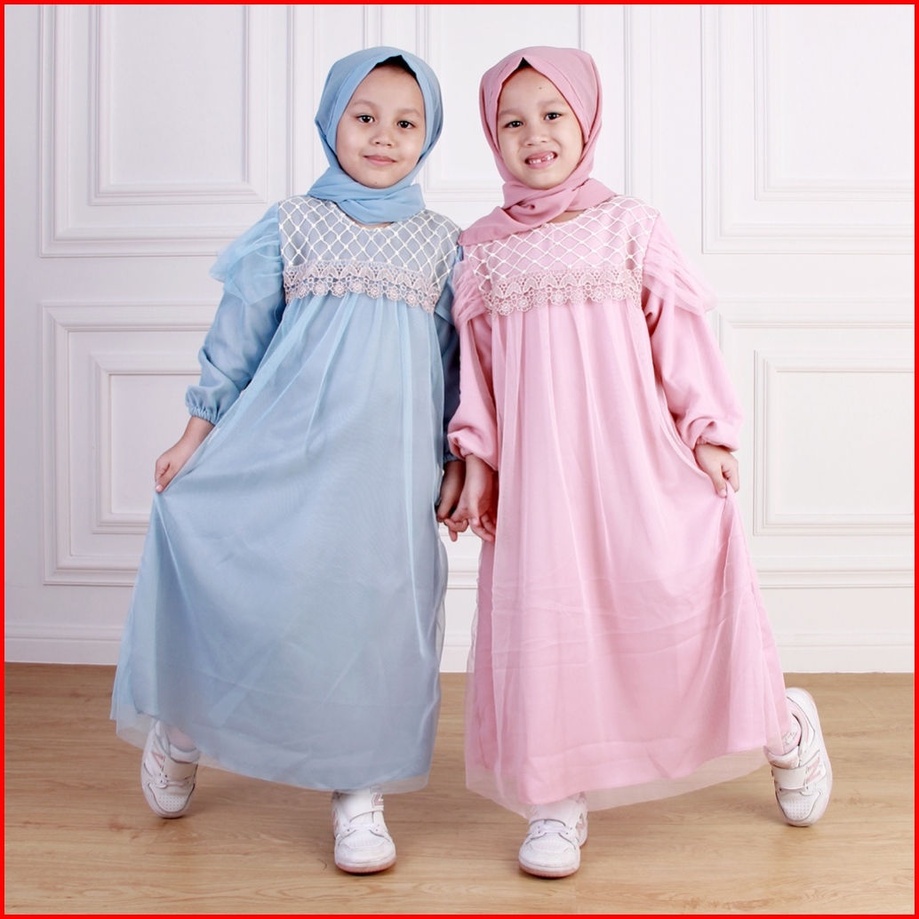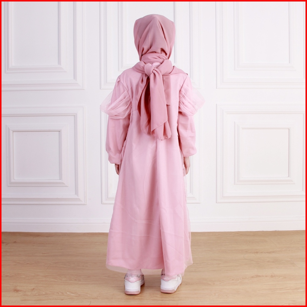 Dungdungkids Gamis Anak Adriana Shakila Mix Tile Dot Free Pashmina Tali 3 - 11 Tahun