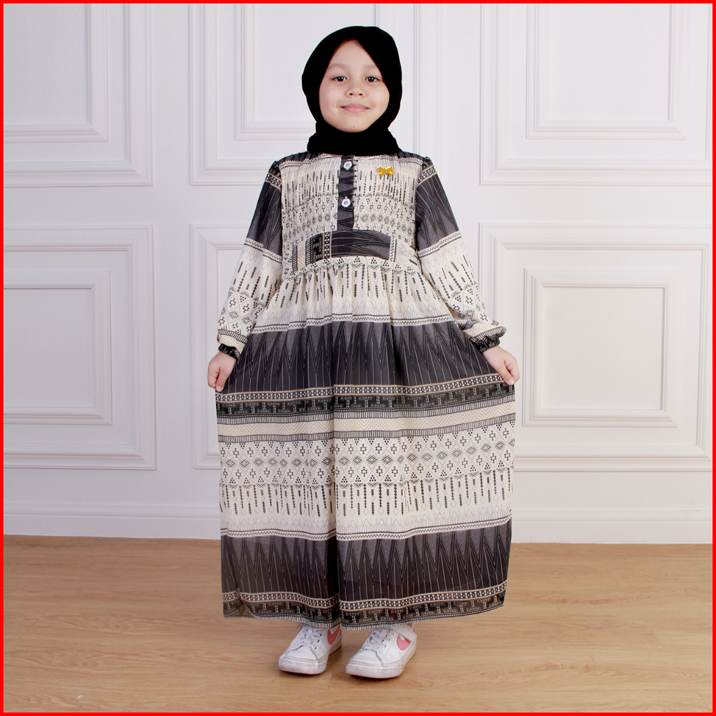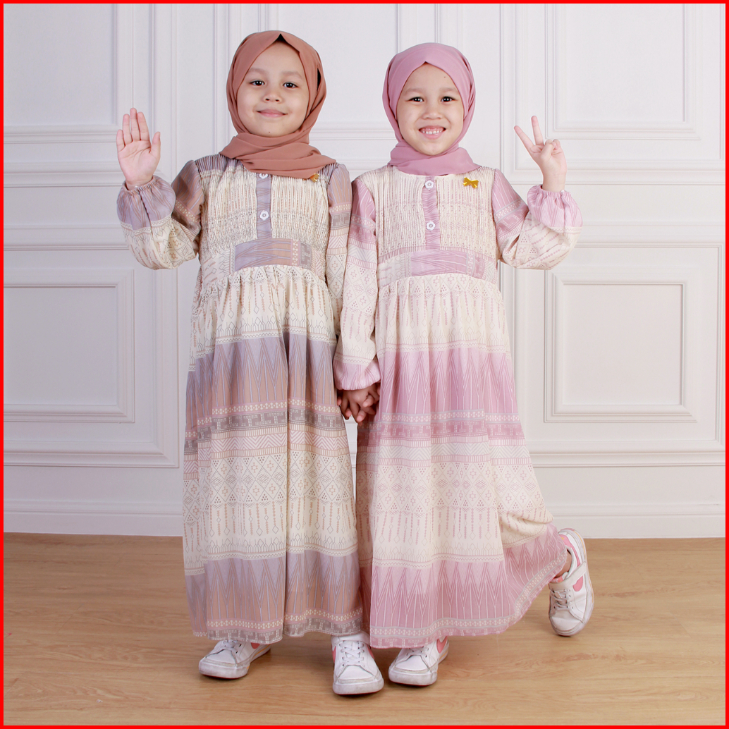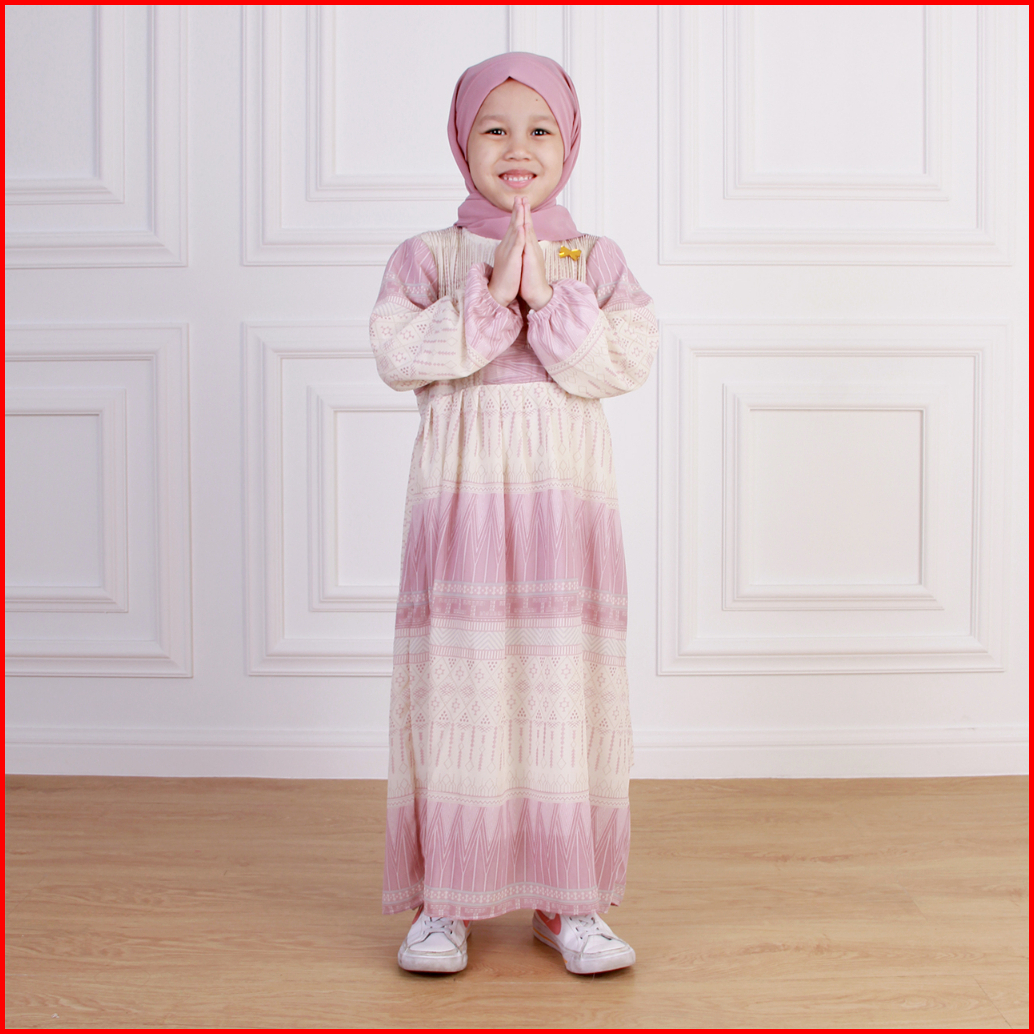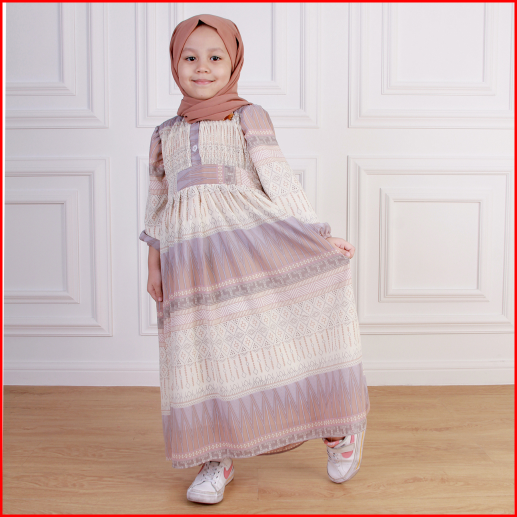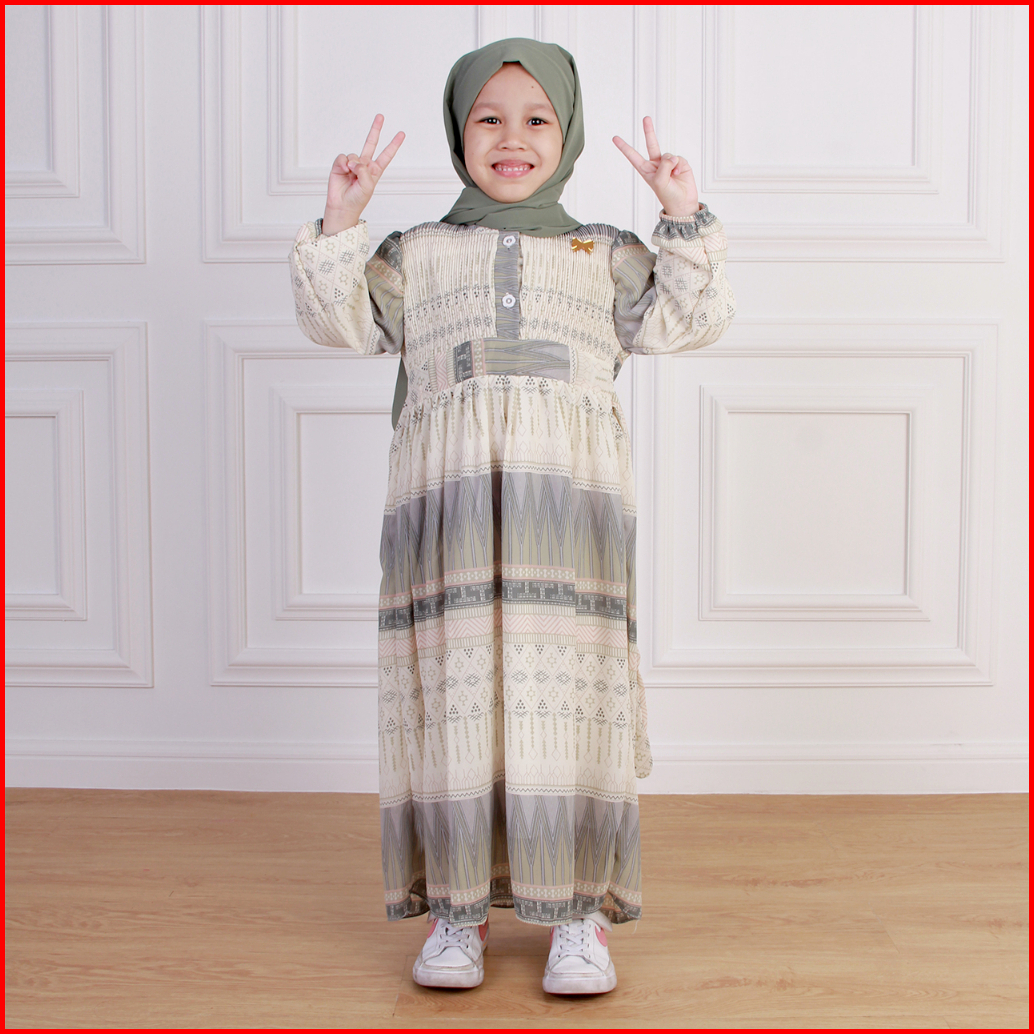 Gamis Anak Perempuan Aulia Ceruty Plisket Free Pashmina 3 - 12 Tahun