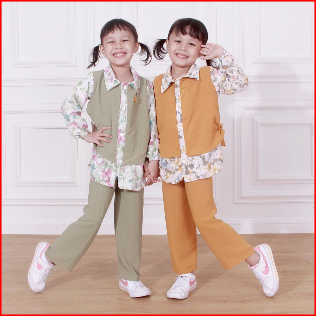 Setelan Anak Shinta Kemeja Korea Crincle Motif 4 - 12 Tahun