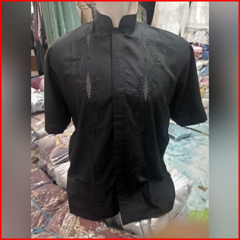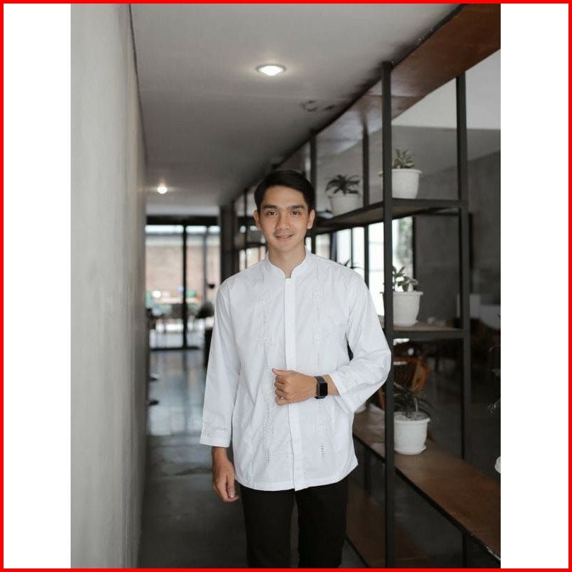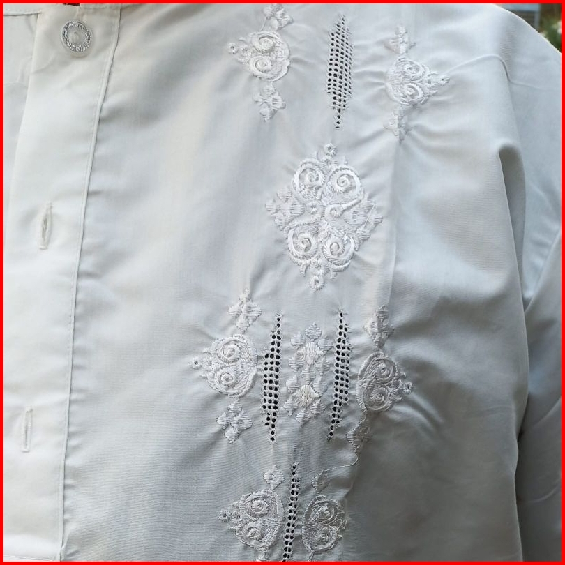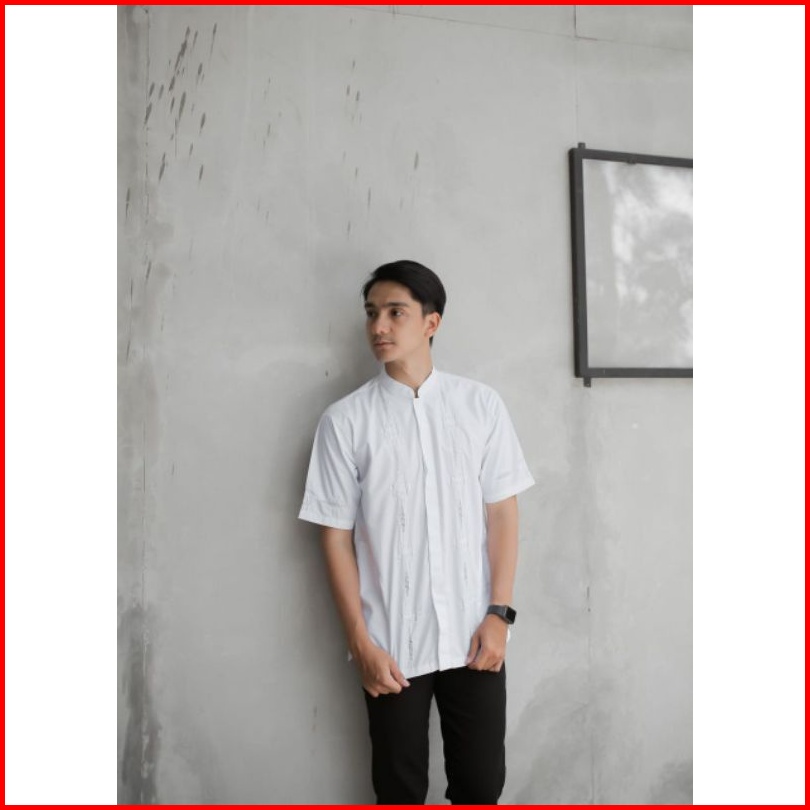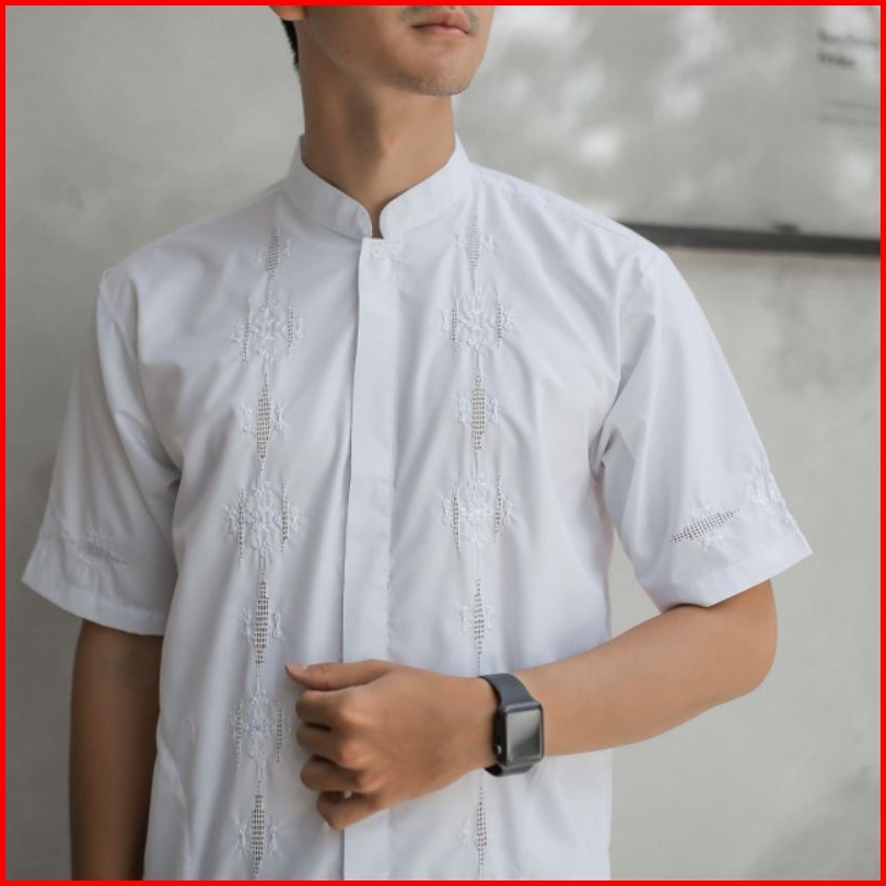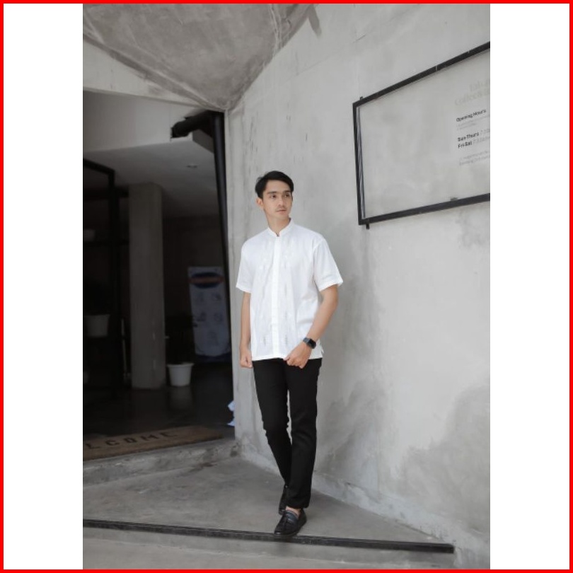 Rkmshop-baju Koko Padang Kerancang Sulaman Tangan Bukittinggi Pria Putih Lengan Pendek