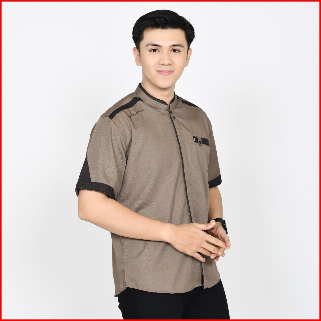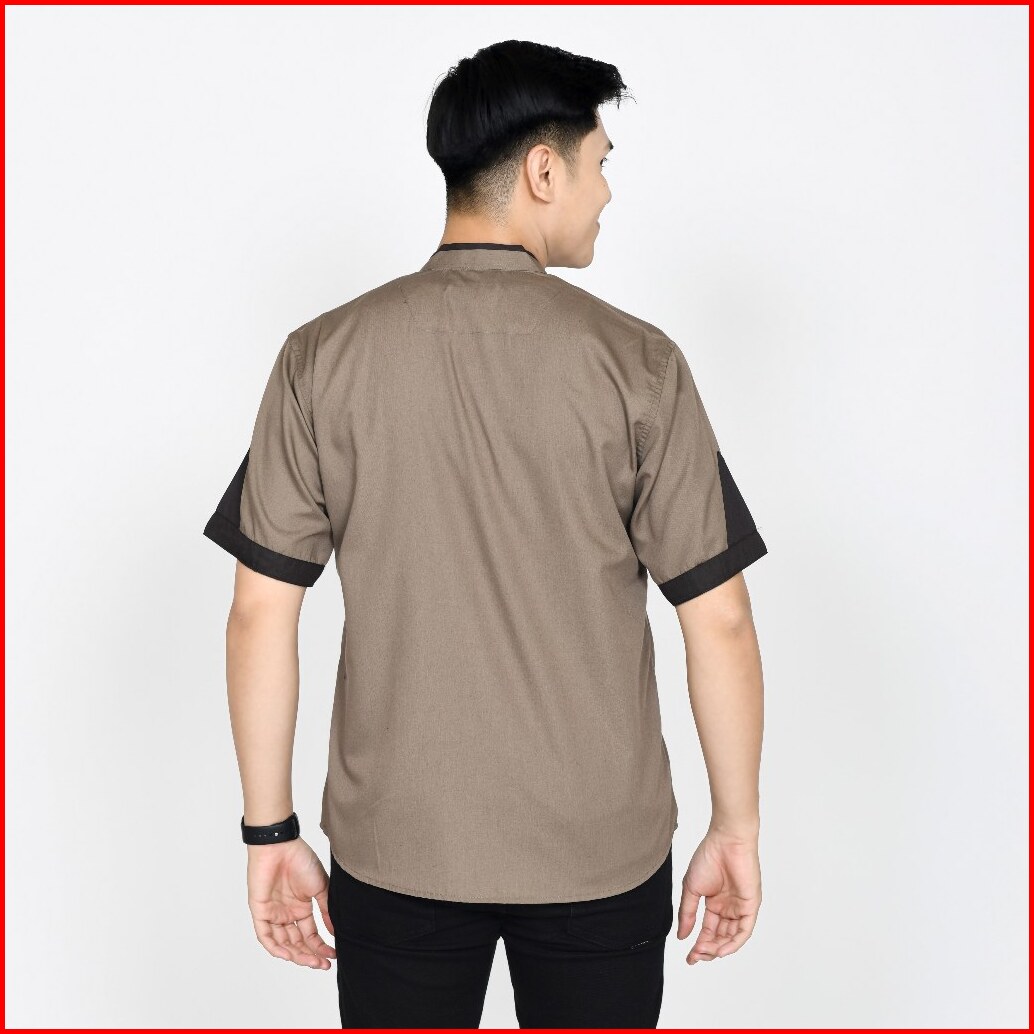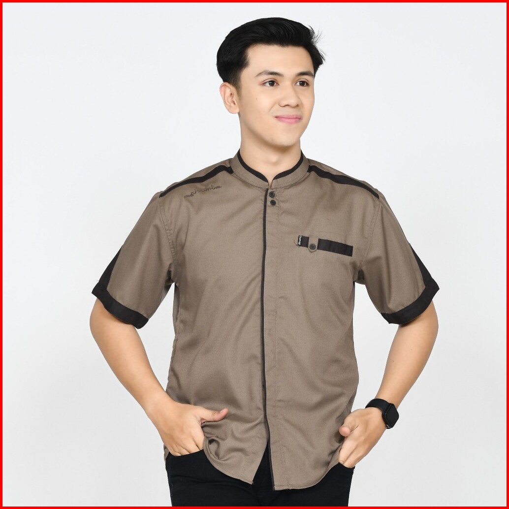 Baju Koko Pria Lengan Pendek Polos Motif Yusinsun Warna Coklat Original Elrumi