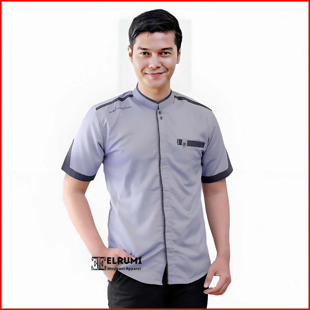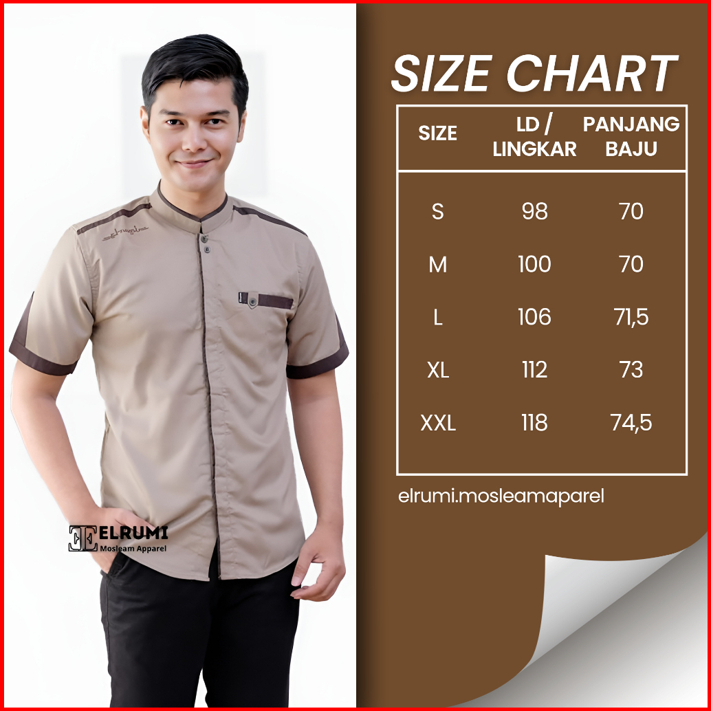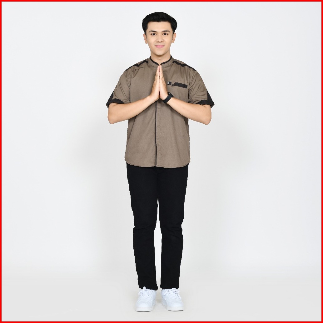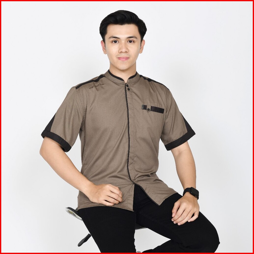 Baju Koko Pria Lengan Pendek Polos Motif Yusinsun Warna Coklat Original Elrumi