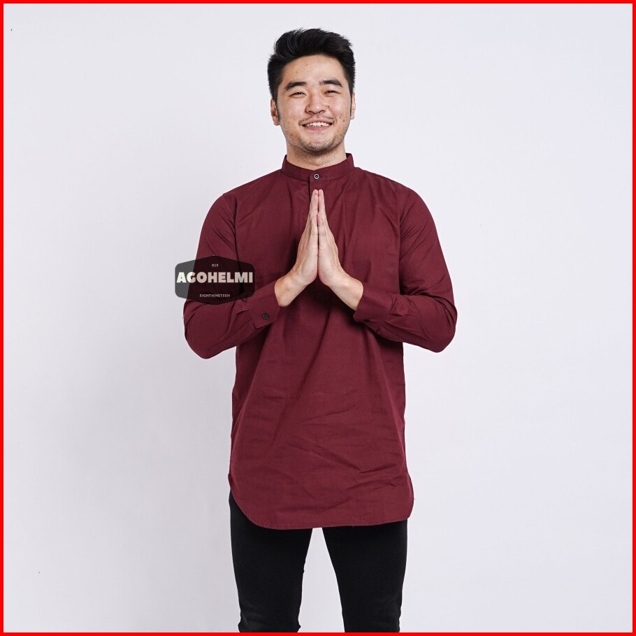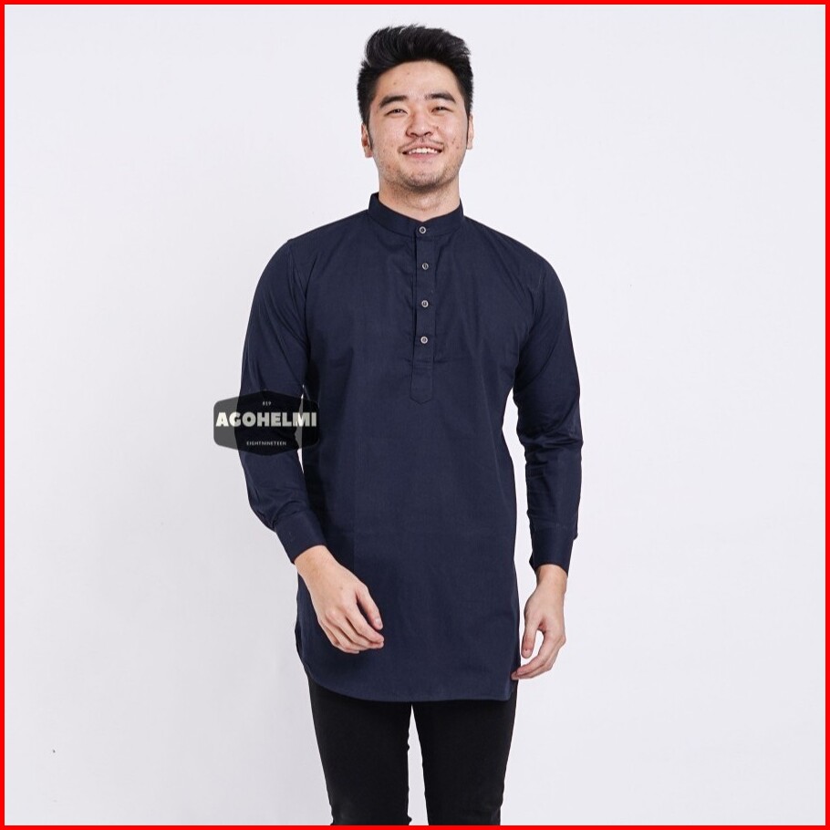 Kemeja Koko Polos Lengan Panjang Kurta Pakistan Pria Biru Muda Oxford Light Blue Baju Koko Pria